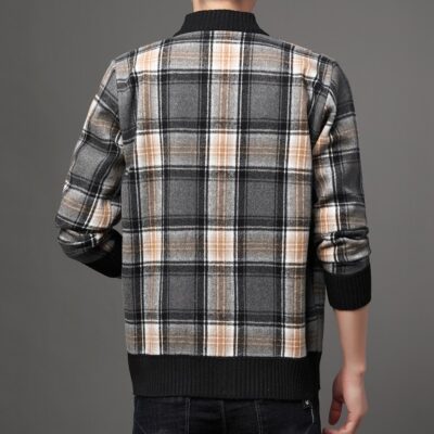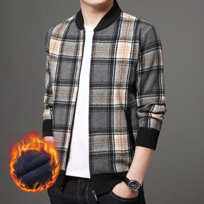 2021 Mùa Thu Đông Cổ Kẻ Sọc Cổ Bóng Chày Plus Nhung Dày Nam Maoni Phối Plus Áo Khoác Nhung Dây Kéo Cardigan