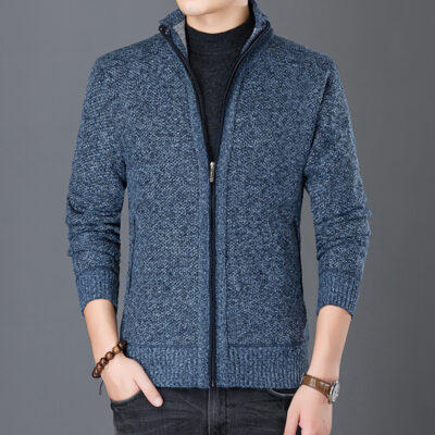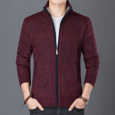 2021 Mùa Thu Đông Mới Cổ Đứng Nam Áo Len Dệt Kim Dày Plus nhung Bóng Chày Cardigan Nam Thời Trang Áo Khoác Bán Buôn
