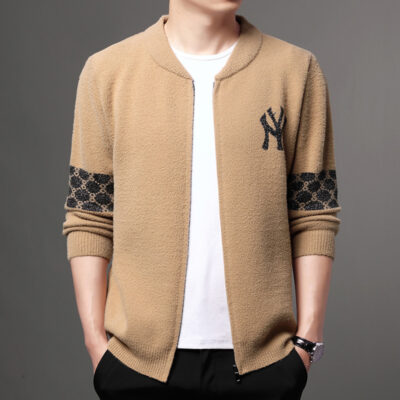 2021 Mùa Thu Đông Mới Nam Dệt Kim Cardigan Bóng Chày Cổ Dây Kéo Dạ Nỉ Dáng Rộng Áo Khoác Áo Khoác Nam Thế Hệ