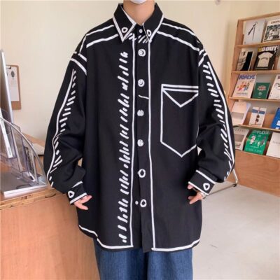 2022 áo sơ mi nam dài tay graffiti vẽ tay mới mùa xuân và mùa thu áo rộng cỡ lớn phong cách Hồng Kông áo khoác hợp thời trang
