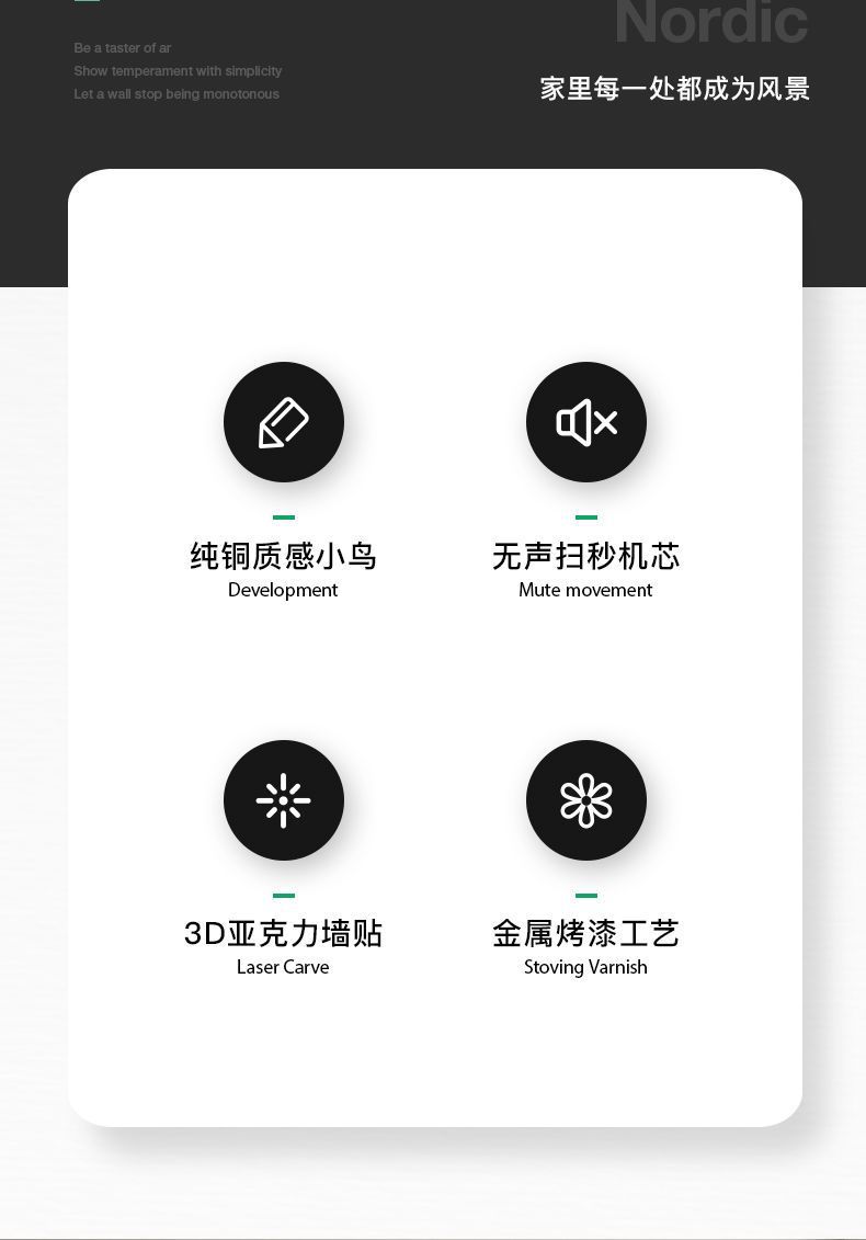 Bộ máy Thương hiệu: Nhật Bản MIYOTA Citizen Ngoại hình: Tròn Danh mục sản phẩm: Đồng hồ treo tường Chất liệu: Sắt Màu sắc: Đồng hồ treo tường hình chim nhánh nhỏ/Đồng hồ treo tường hình chú chim nhánh lớn/Tranh dán tường hình chú chim nhánh nhỏ/Tranh dán tường hình chú chim nhánh lớn/Tranh dán tường hình chú chim nhánh lớn Mẫu : Khác Độ dày: Khác Các tính năng đặc biệt: Trang trí Loại màn hình: Khác Không thấm nước: Không Hai mặt: Một mặt Nơi áp dụng: Phòng khách Thông số kỹ thuật đóng gói: Nơi khác Xuất xứ (Trong nước): Gia công và tùy chỉnh tại tỉnh Cam Túc: Không Cho dù chéo xuất khẩu biên giới Nguồn cung cấp đặc biệt: Không Số lượng hộp: Nhãn hiệu khác: Khác Số mặt hàng: 0 Kiểu chuyển động: Khác Loại chuyển động: In điện tử LOGO: Không Chất liệu vỏ: Sắt Cho dù có bản quyền hoặc Bằng sáng chế: Không Chất liệu gương: Thủy tinh Kích thước: 15- bảo hành năm + 15 ngày dùng thử miễn phí Không gian: Phòng khách Loại nguồn: Pin khô Phong cách: Đơn giản, hiện đại Loại màn hình: Khác Dù nhập khẩu: Không Xuất xứ máy: Khác