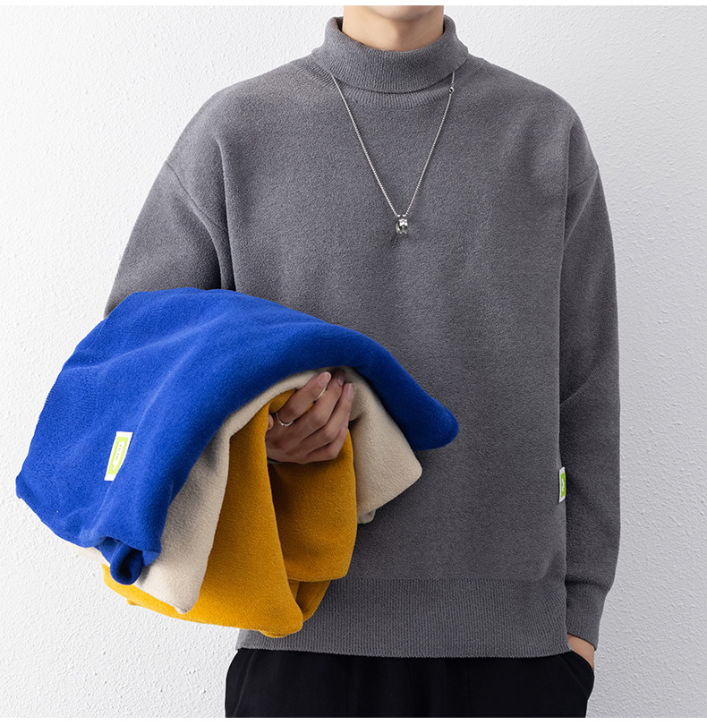 2022 Mới Áo Len Nam Mùa Đông Xu Hướng Thời Trang Thể Thao Cổ Cao Dày Ấm Áo Len Dệt Kim Thay Mặt