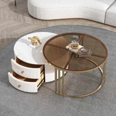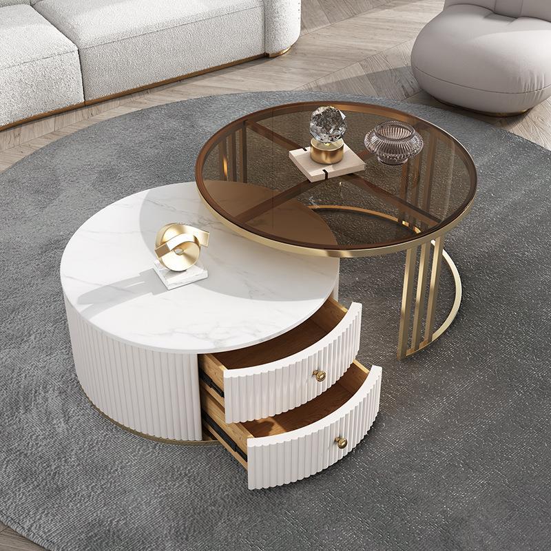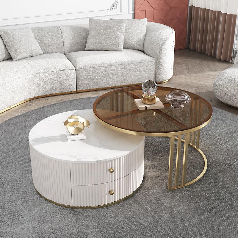 2022 mới bàn trà nhẹ sang trọng hiện đại tối giản căn hộ nhỏ kích thước tối giản kết hợp phòng khách kính đá phiến bàn cà phê