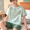 2022 mới bộ đồ ngủ của nam giới mùa hè băng lụa quần short ngắn tay lụa mùa hè quần áo ở nhà của nam giới mô phỏng lụa mỏng phần