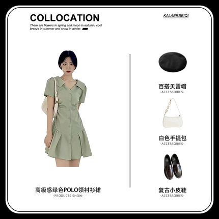 2022 mới cao cấp váy polo xanh lá cây váy mùa hè thiết kế váy ngắn cảm giác quần áo phụ nữ thích hợp