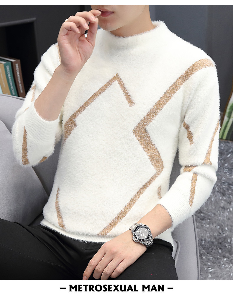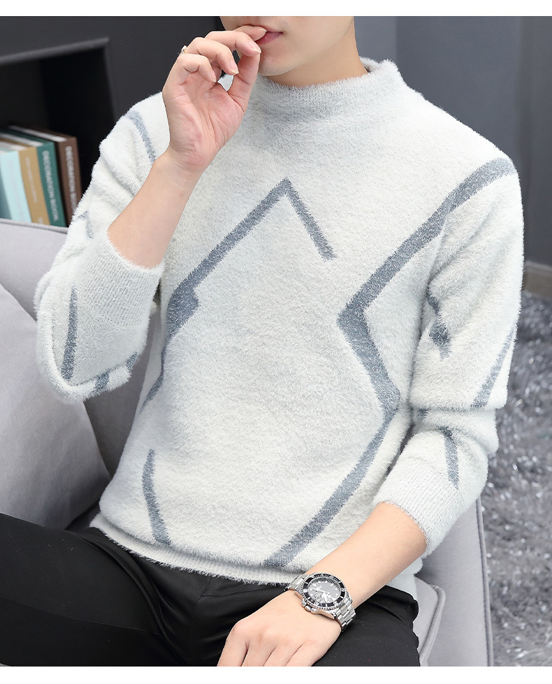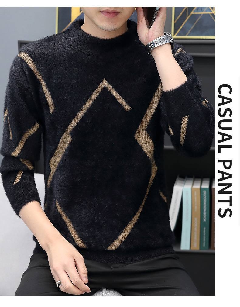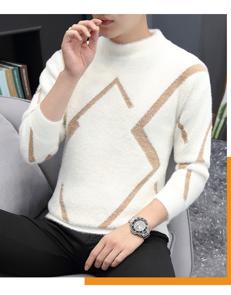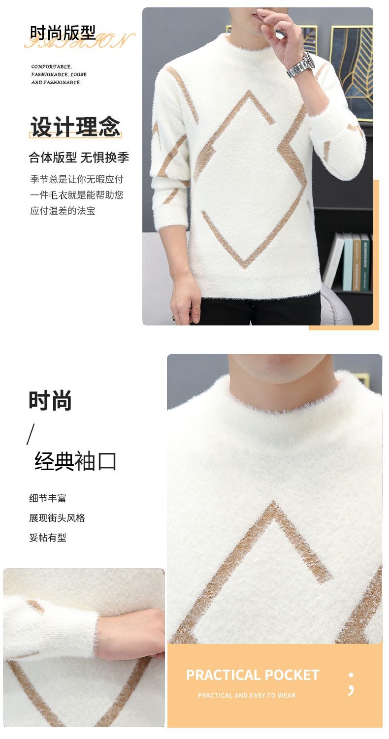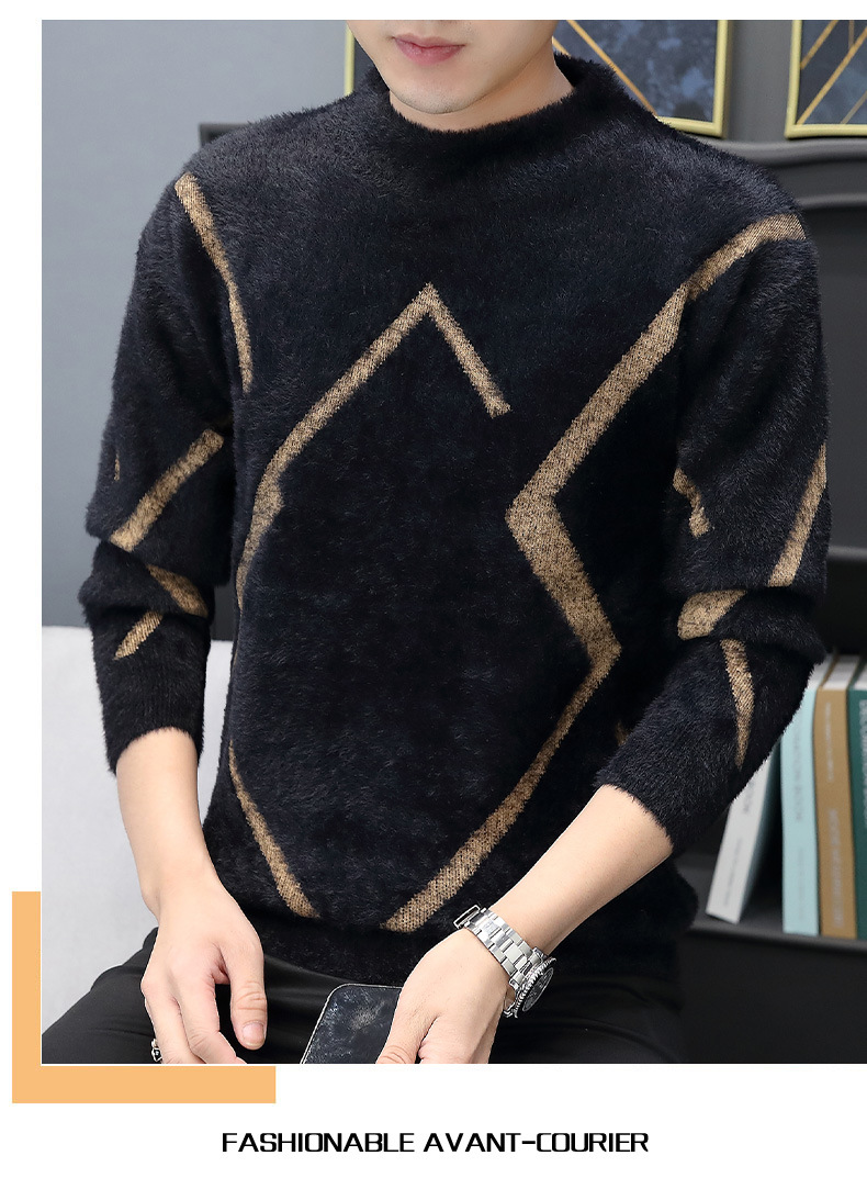 2022 Mới Nam Giả Nhung Nửa Áo Len Cao Cổ Thanh Niên Dày Áo Len