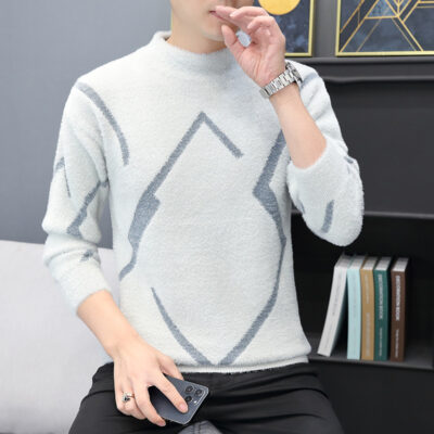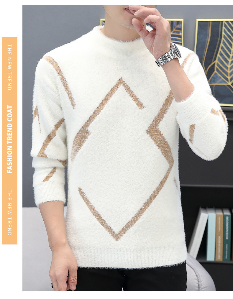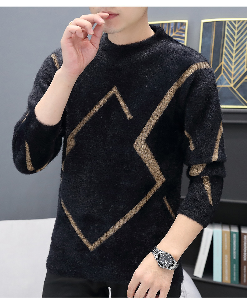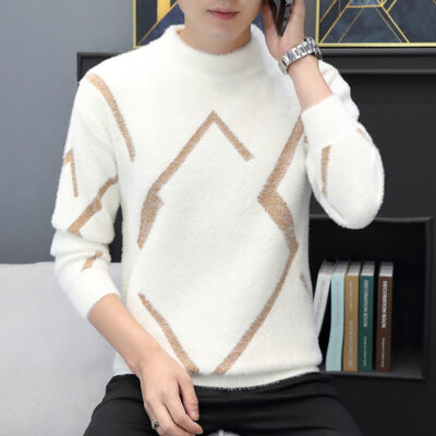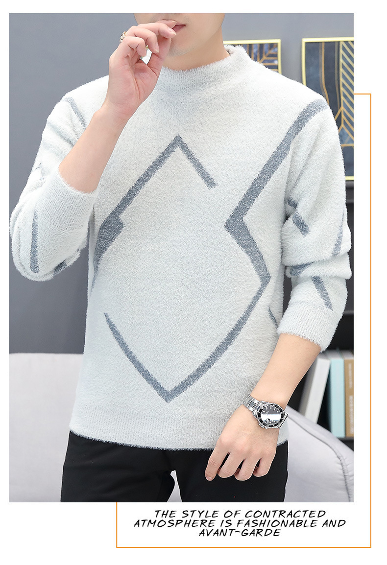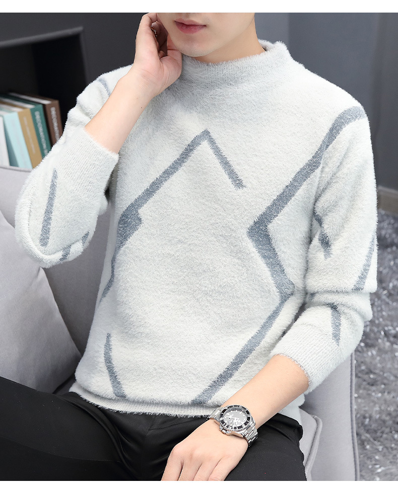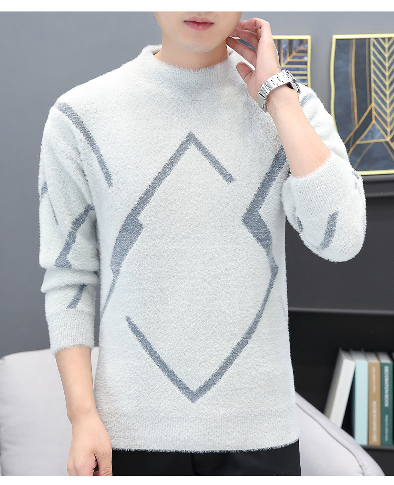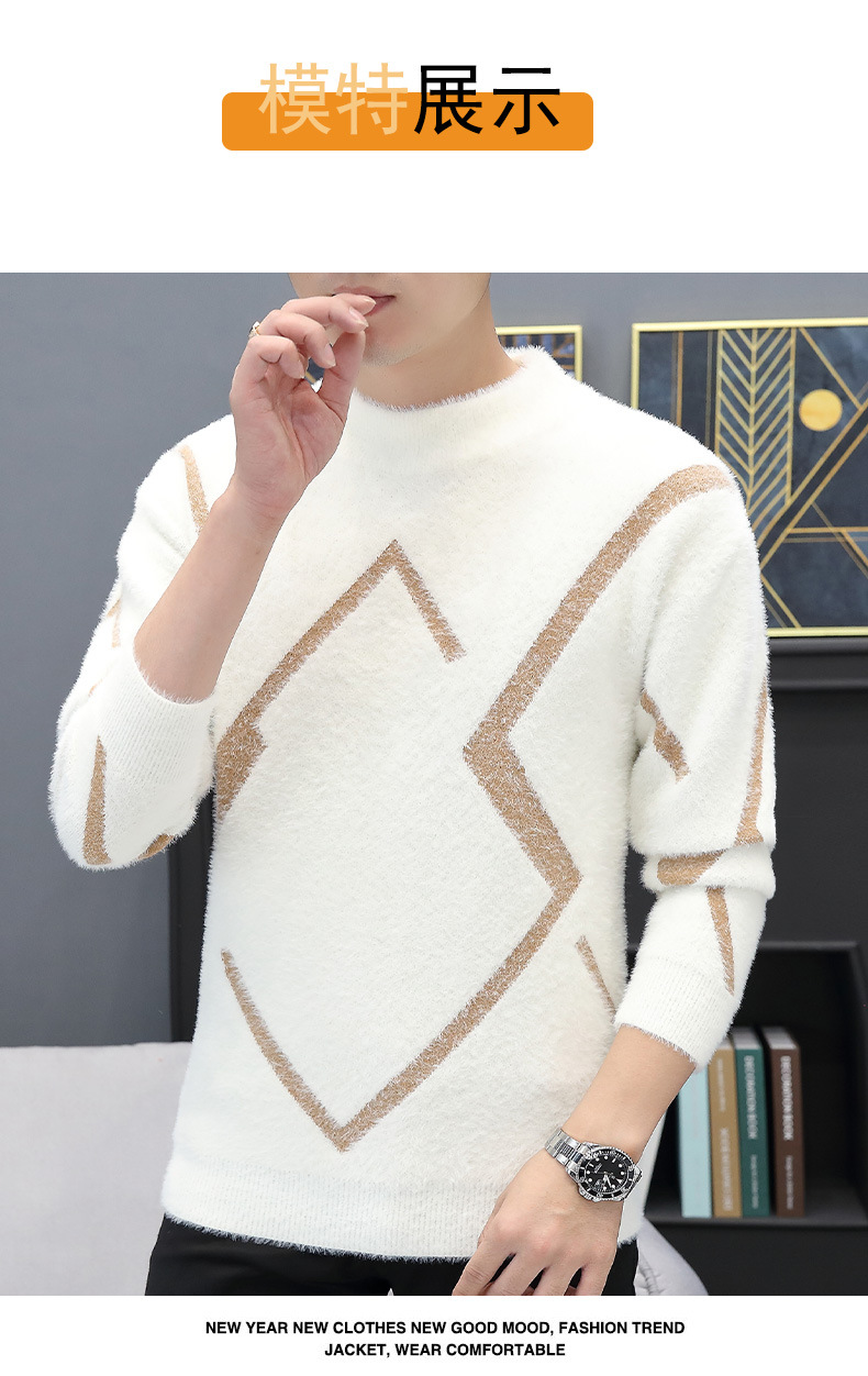 2022 Mới Nam Giả Nhung Nửa Áo Len Cao Cổ Thanh Niên Dày Áo Len
