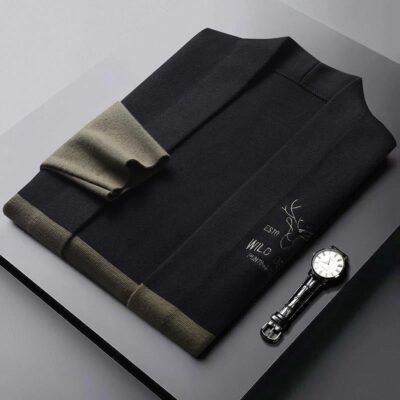 2022 Mới Rời Hàn Quốc Cardigan Thể Thao Có Mũ Áo Khoác Áo Len Thu Đông Nam Phối Màu Cao Cấp