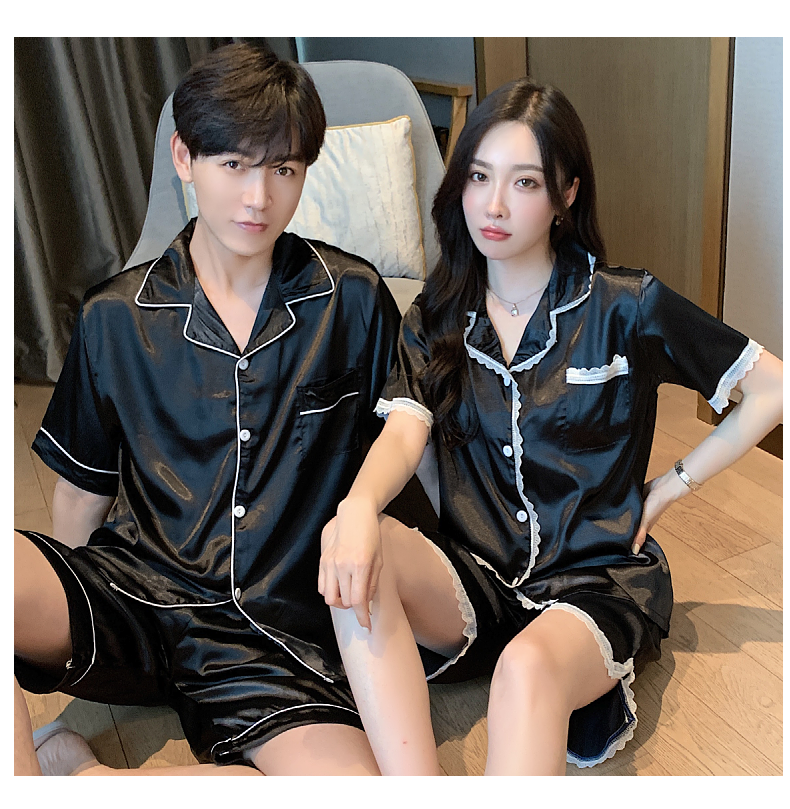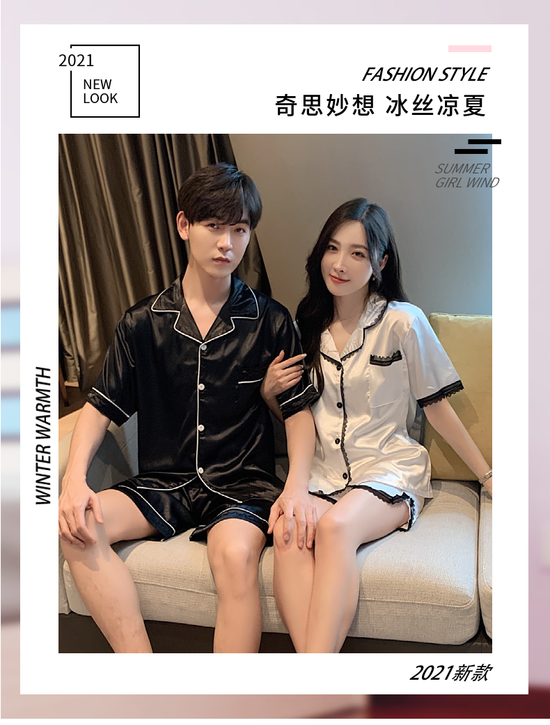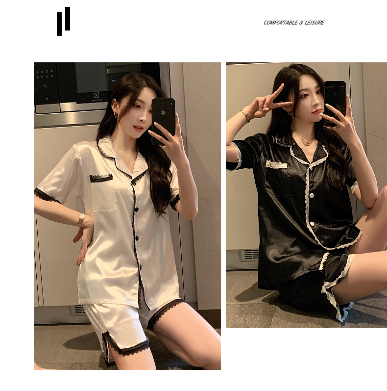 2022 mới vài bộ đồ ngủ phụ nữ mùa hè băng lụa ngắn tay quần short nam mỏng mặc nhà bộ đồ mùa xuân và mùa thu
