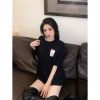 2022 mùa hè mới cổ tròn tay ngắn áo thun nữ áo sơ mi dưới cùng áo thun in màu đen lỏng lẻo