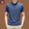 2022 mùa hè mới của nam giới trung niên màu rắn ngắn tay công sở áo thun lụa dâu tằm mỏng phần cao cấp áo thun polo bình thường