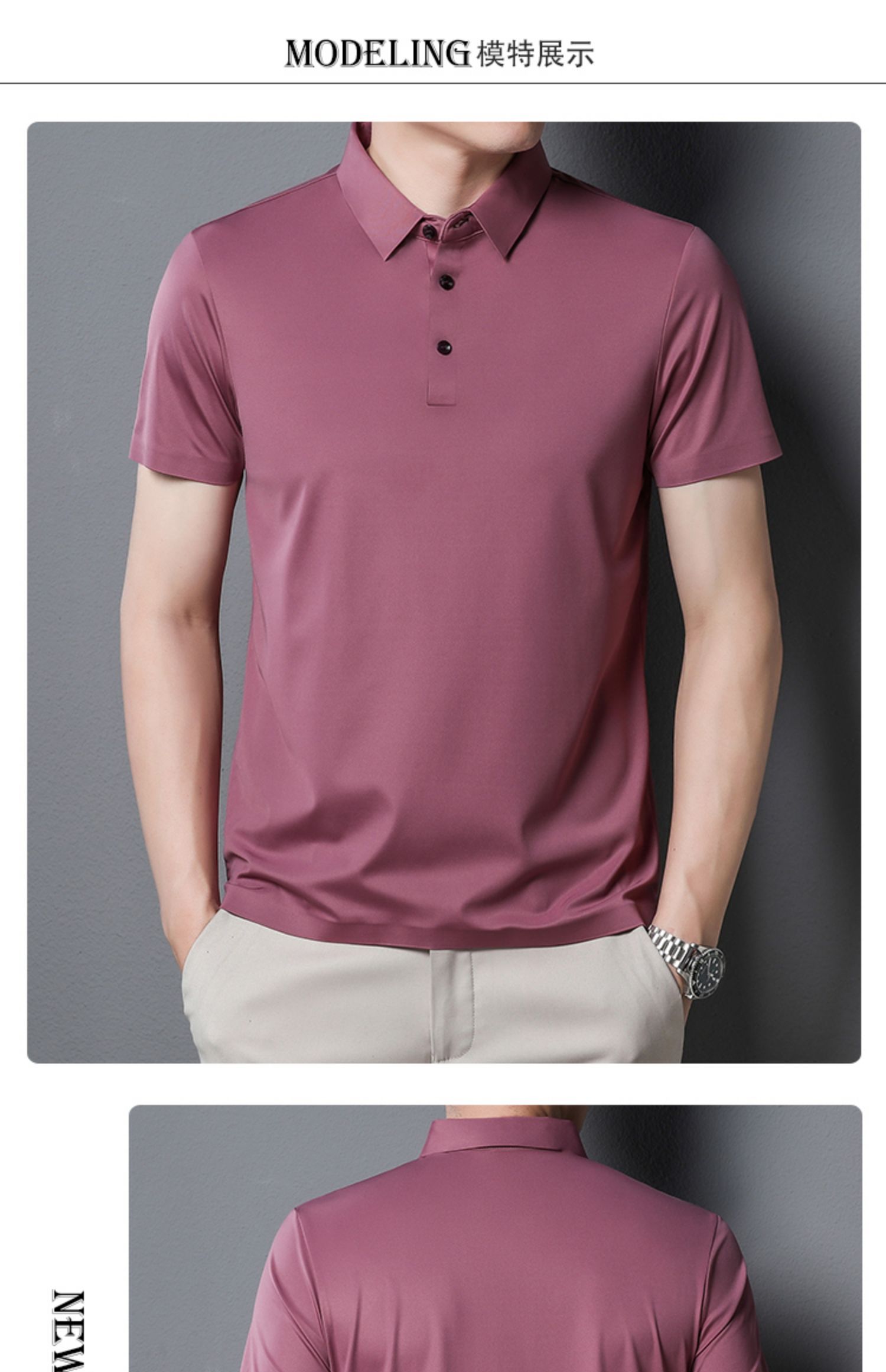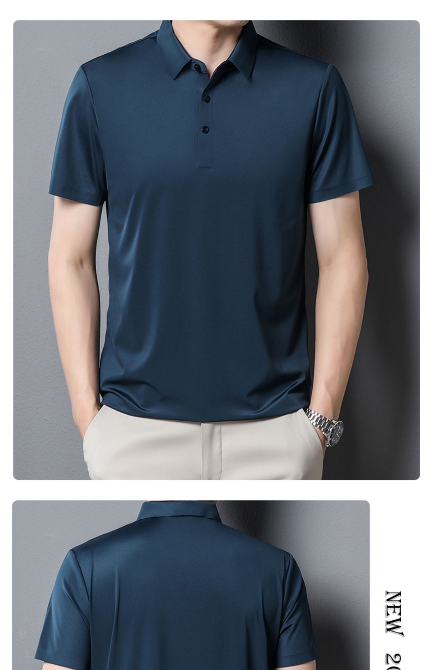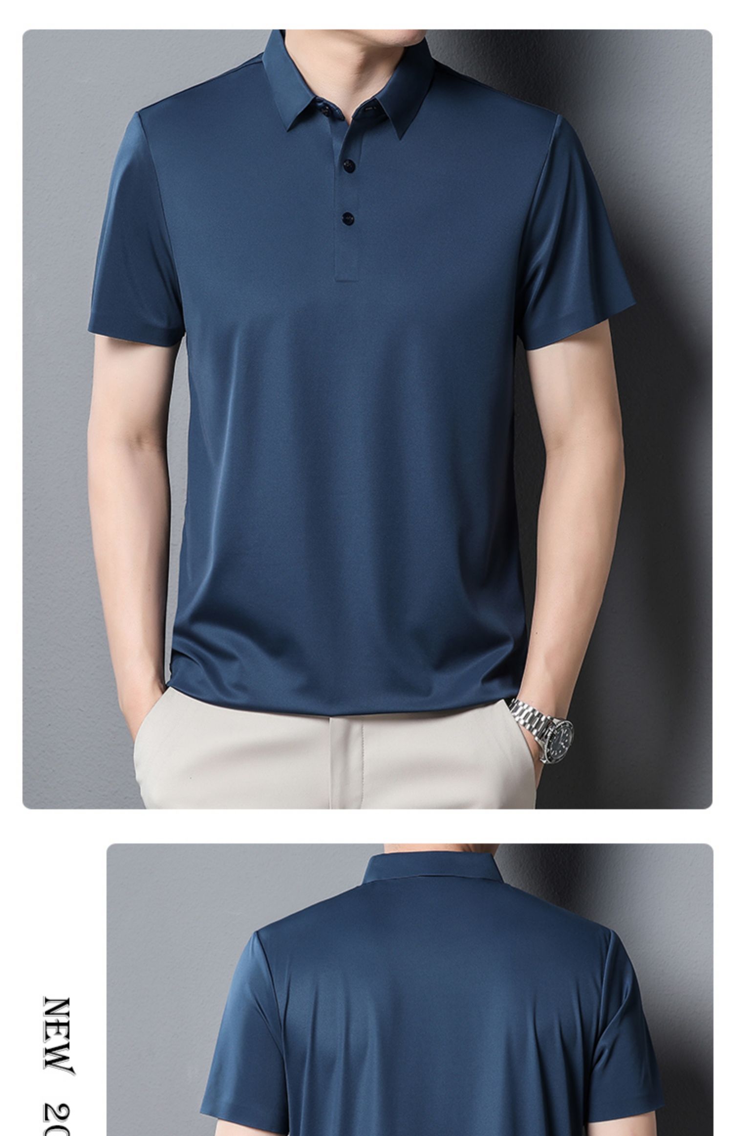 2022 mùa hè mới của nam giới trung niên màu rắn ngắn tay công sở áo thun lụa dâu tằm mỏng phần cao cấp áo thun polo bình thường