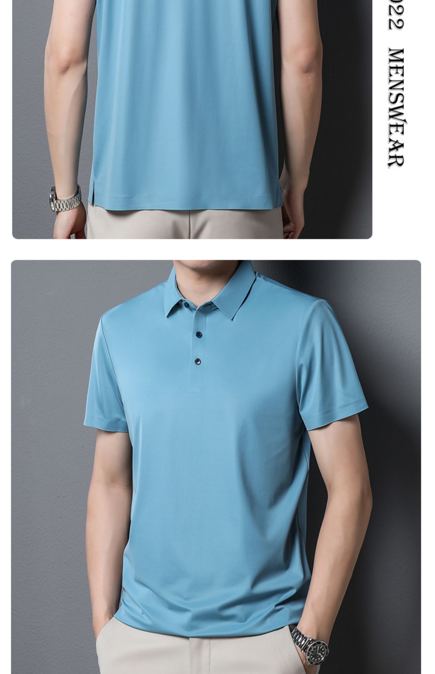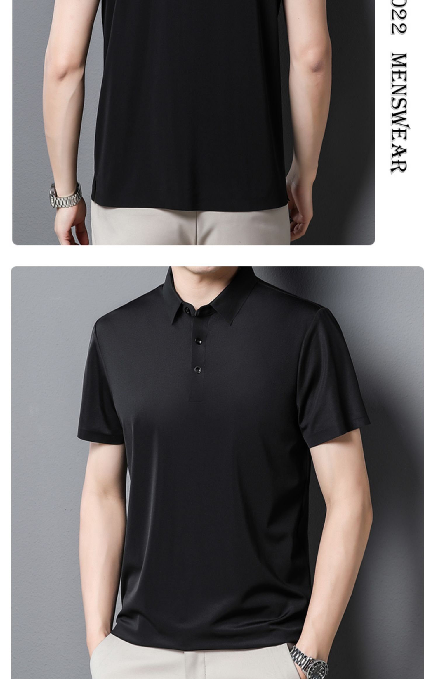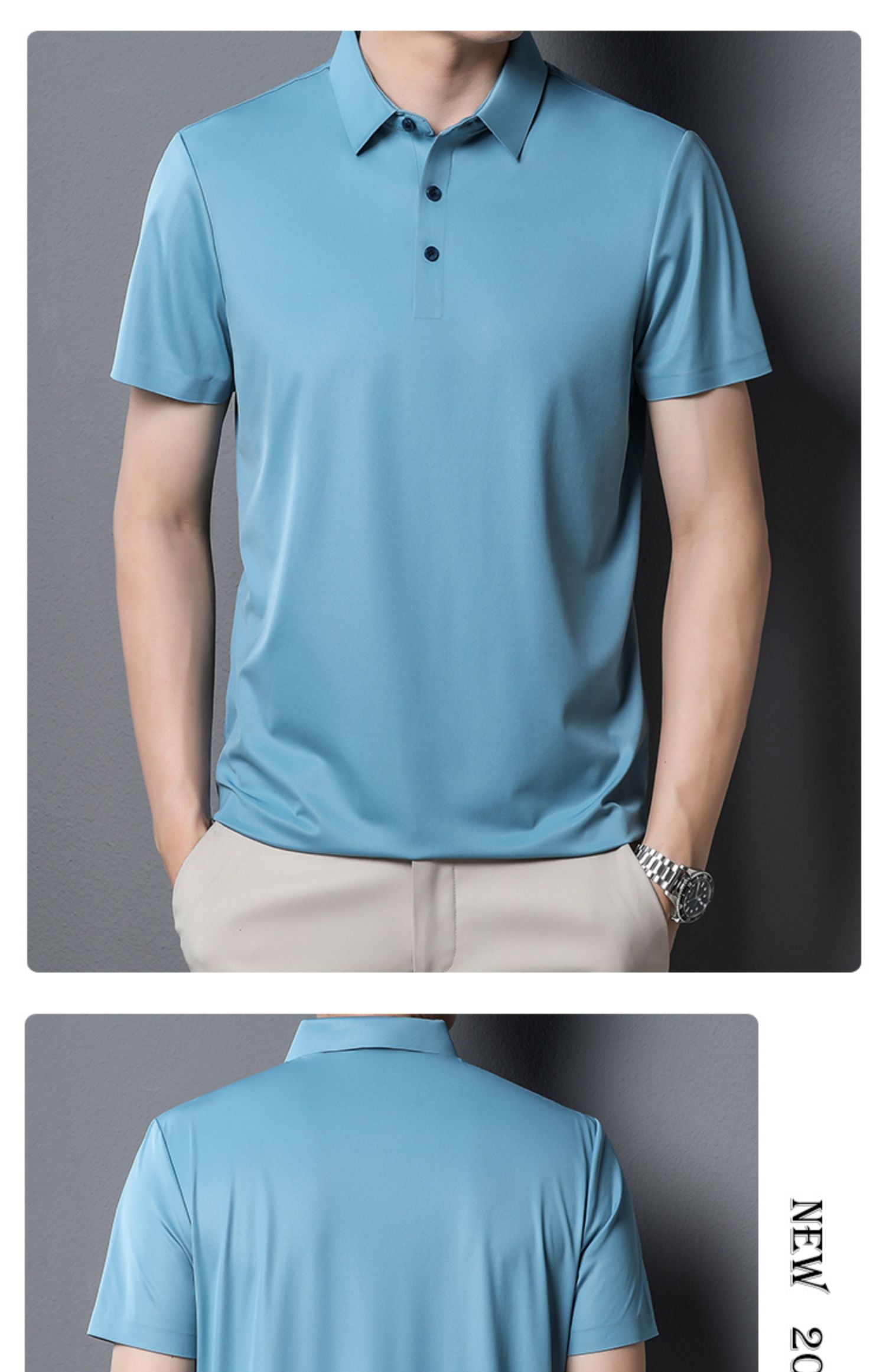 2022 mùa hè mới của nam giới trung niên màu rắn ngắn tay công sở áo thun lụa dâu tằm mỏng phần cao cấp áo thun polo bình thường