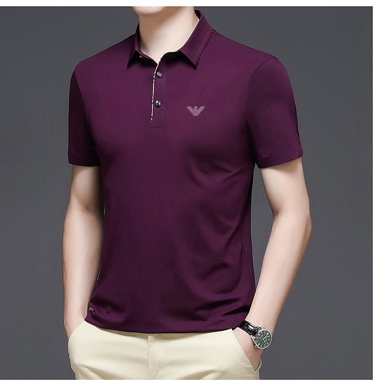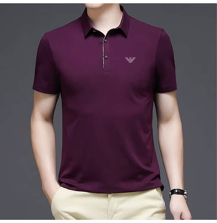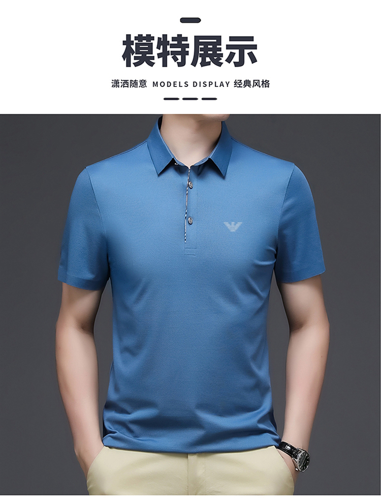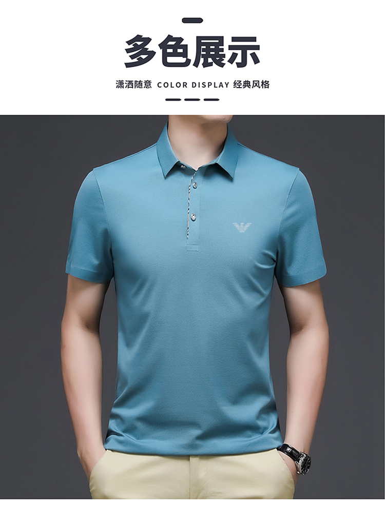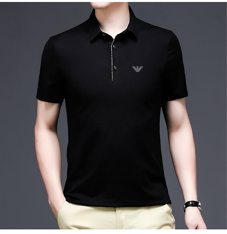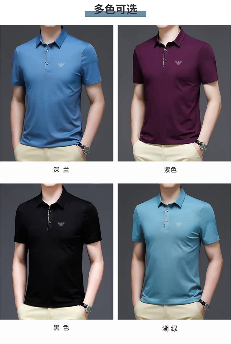 2022 mùa hè mới quần áo nam Armani nam giới trung niên phần mỏng lụa dâu tằm ve áo ngắn tay POLO áo phông