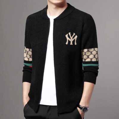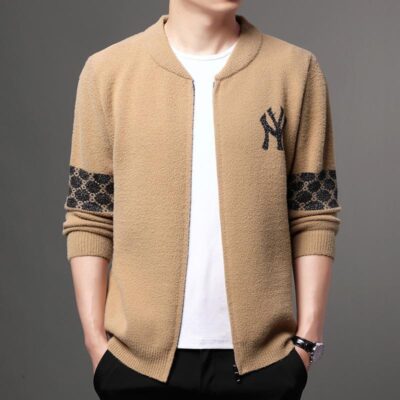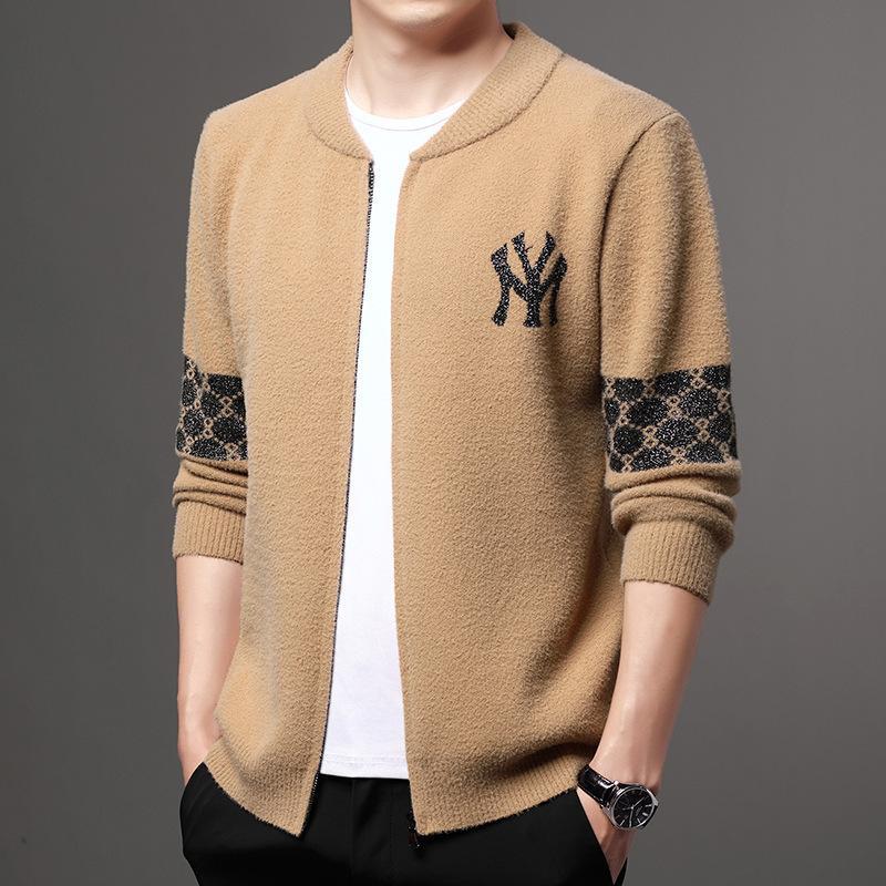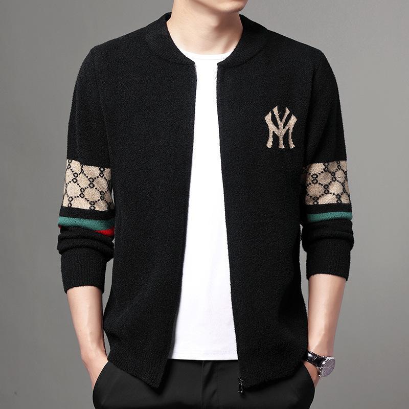 2022 Mùa Thu Đông Mới Nam Dệt Kim Cardigan Bóng Chày Cổ Dây Kéo Dạ Nỉ Dáng Rộng Áo Khoác Áo Khoác Nam Thế Hệ