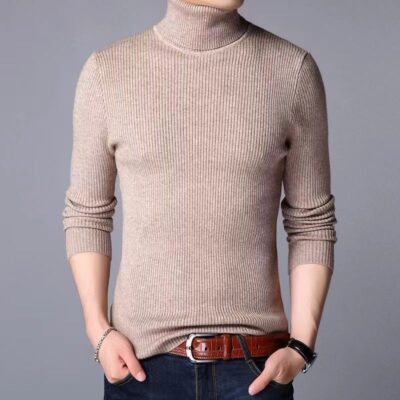 2022 Mùa Thu Đông Thời Trang Cổ Cao Sọc Dọc Nón Kết Nam Nữ Co Giãn Đơn Giản Thời Trang Nam Chui Đầu Áo Len