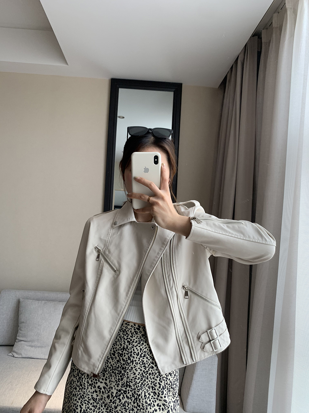 2022 mùa xuân và mùa thu mới của phụ nữ áo khoác da PU khóa kéo đẹp trai áo khoác da xe máy ve áo áo khoác da nhỏ áo khoác da ngắn