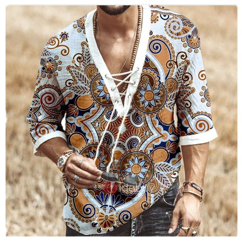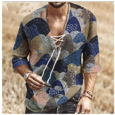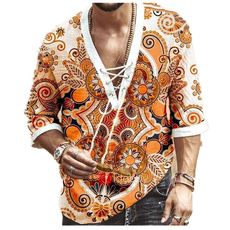 2022 nam mới in 3D nửa tay áo sơ mi Amazon AliExpress chúc Âu Mỹ dân tộc phong cách áo sơ mi