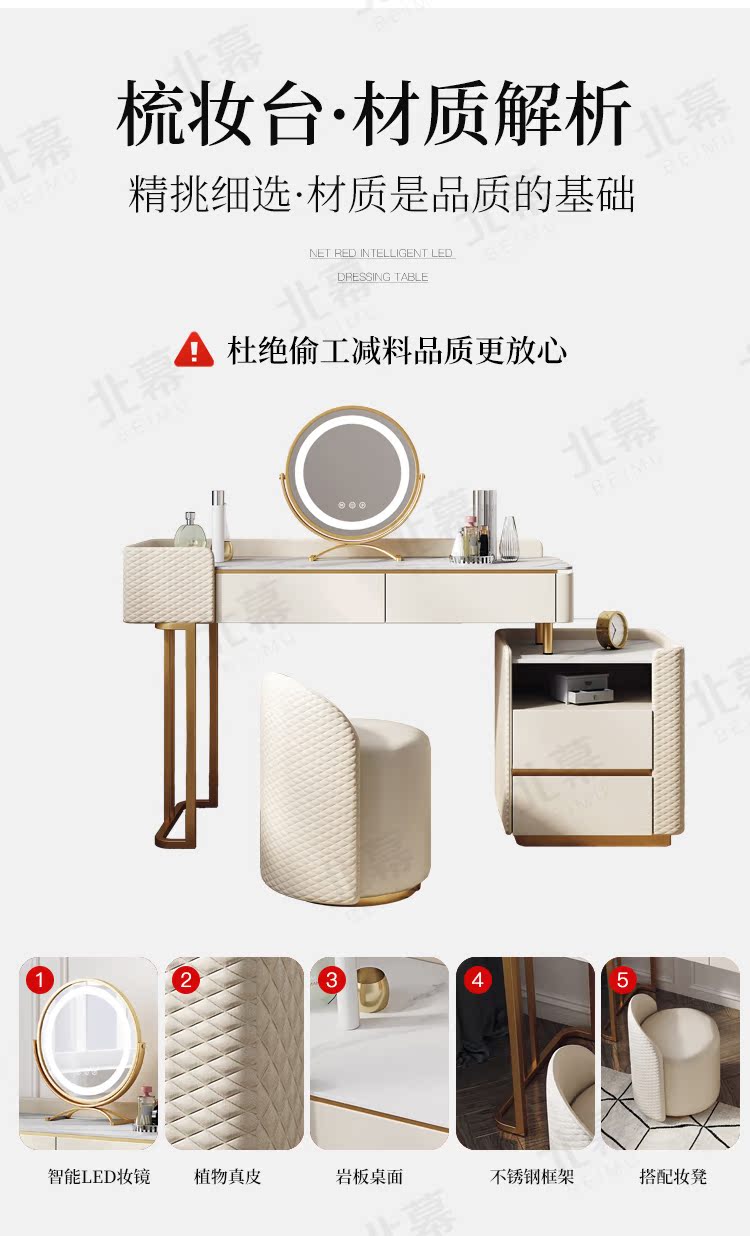 2022 New Light sang trọng bàn trang điểm đá phiến sang trọng hiện đại tối giản phòng ngủ nhỏ tủ lưu trữ tích hợp bàn trang điểm