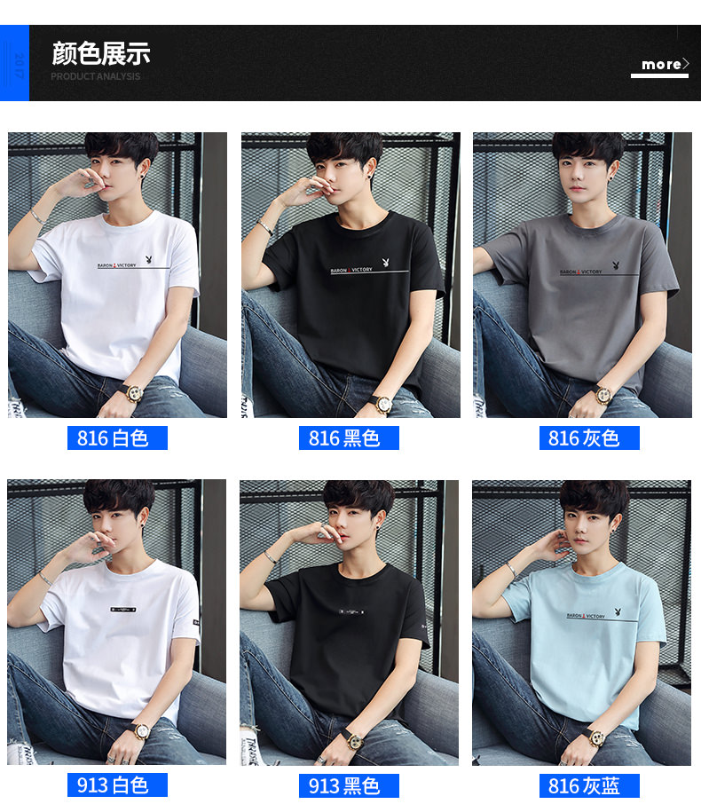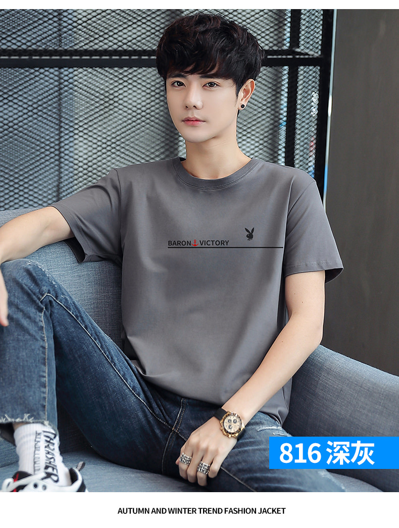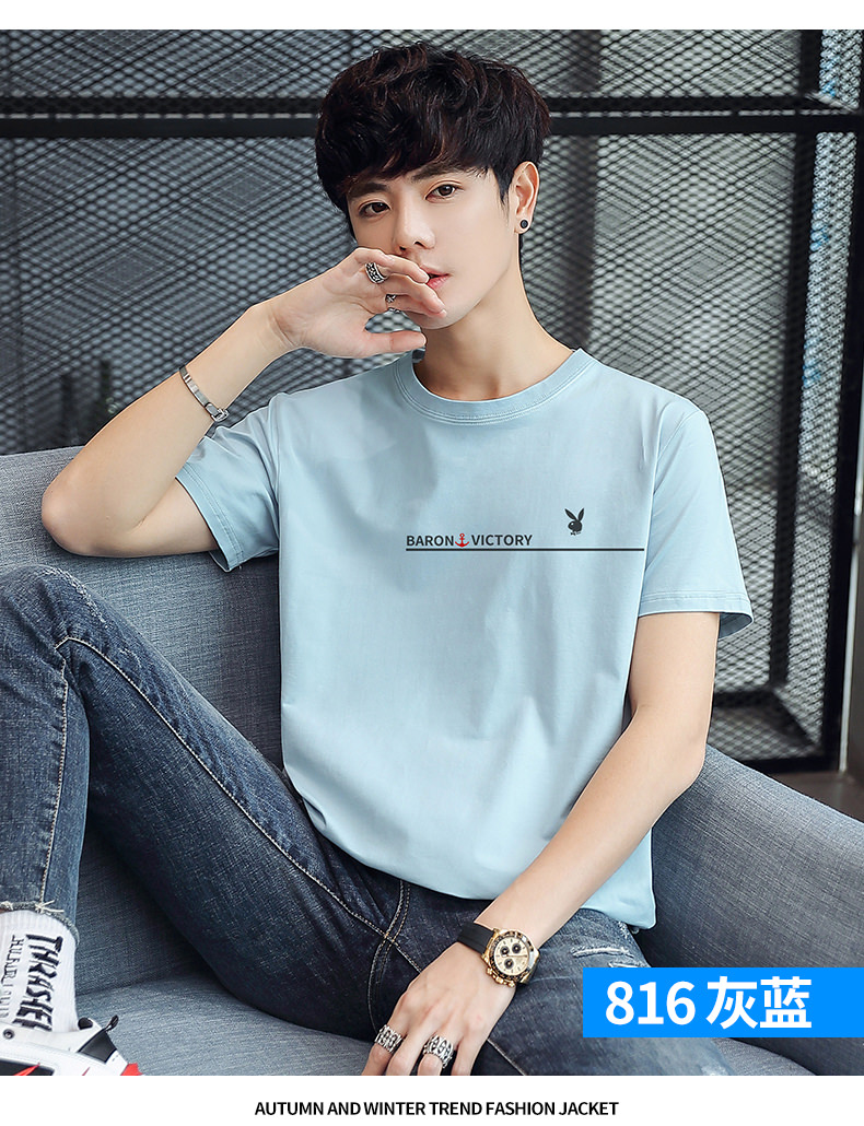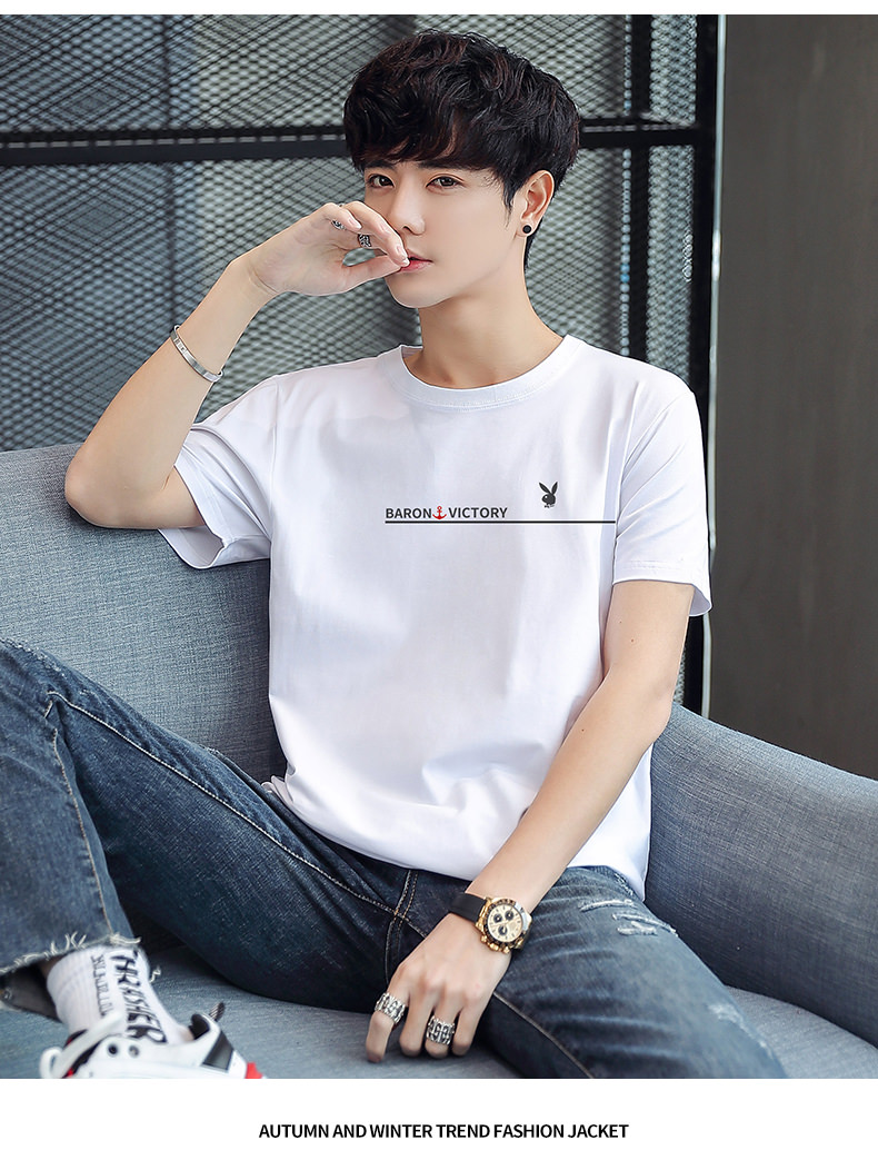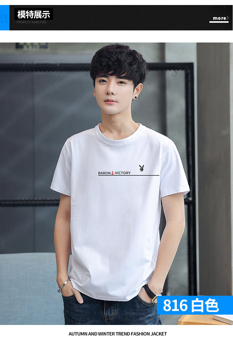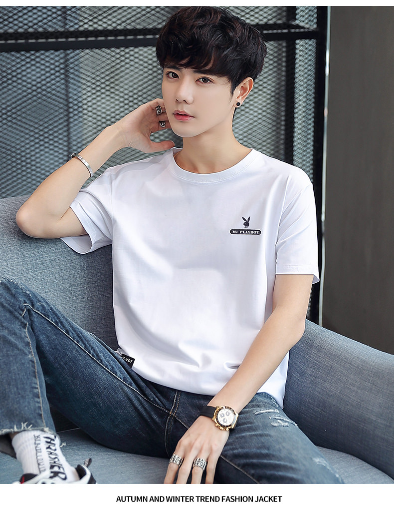 2022 new playboy mùa hè nam giới áo thun trắng ngắn tay áo thun nửa tay xu hướng quần áo thương hiệu