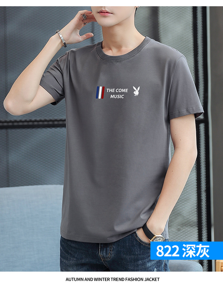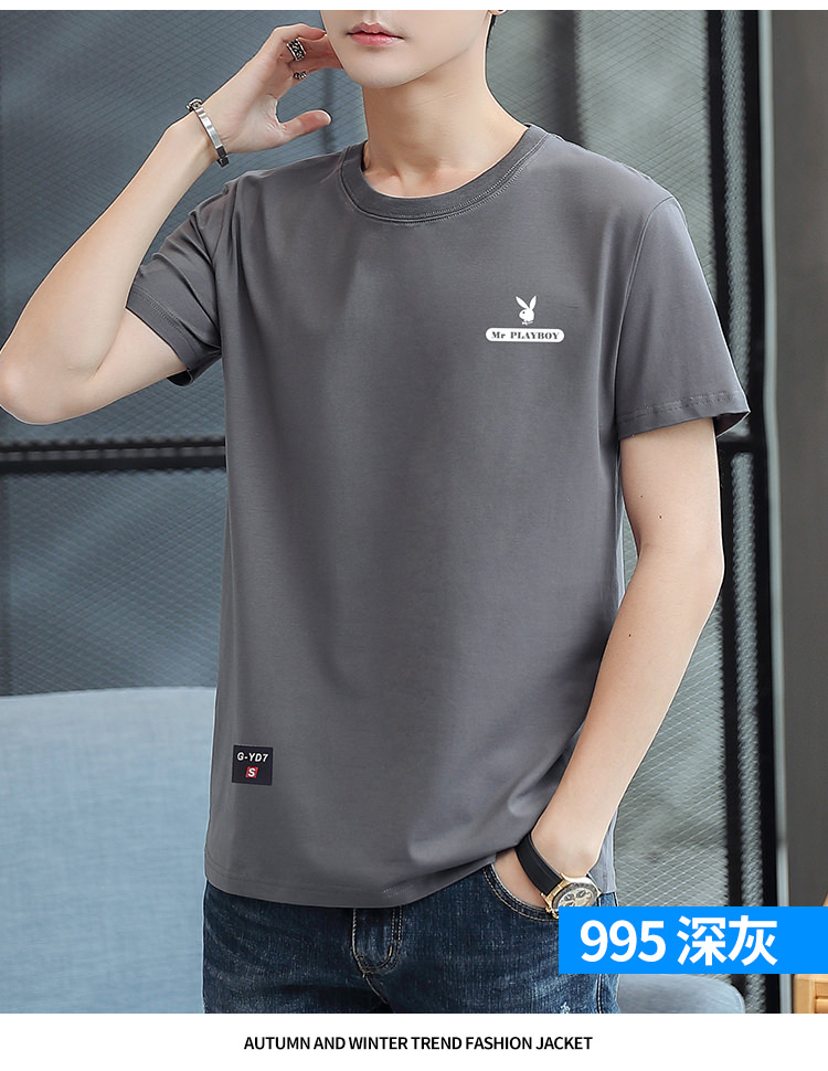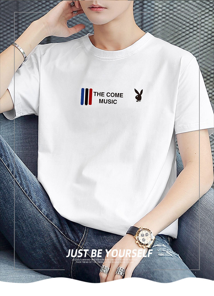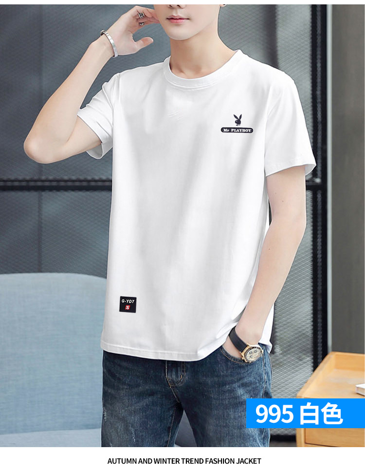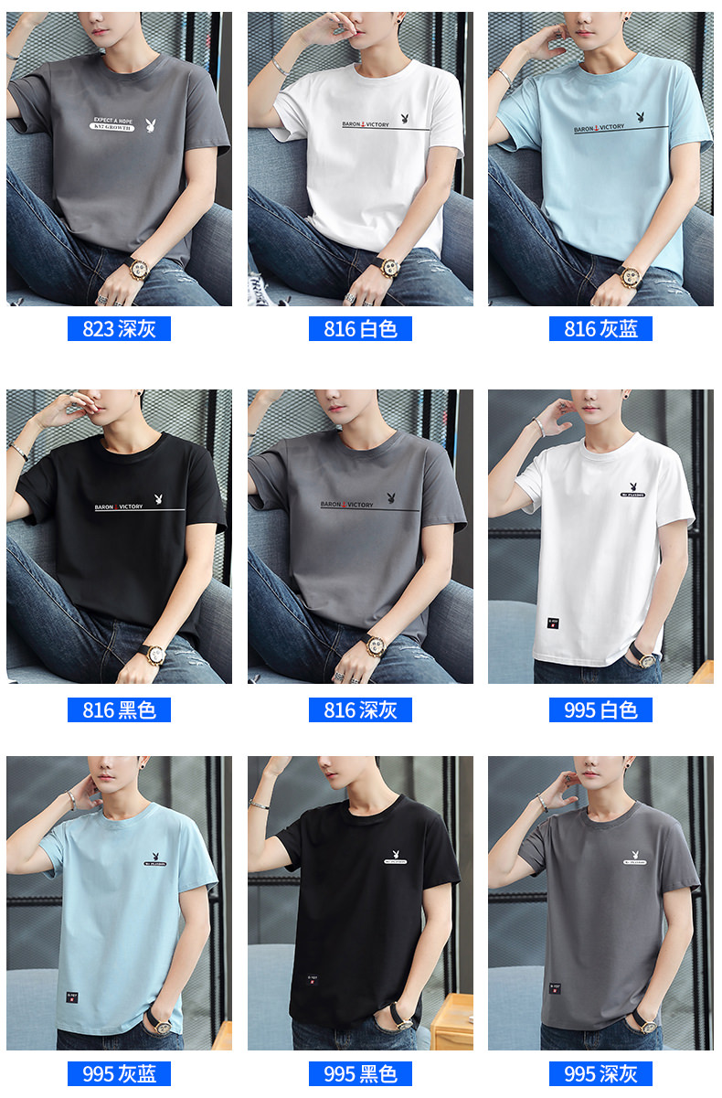 2022 new playboy mùa hè nam giới ngắn tay áo phông trắng cotton áo phông nửa tay xu hướng quần áo hàng đầu