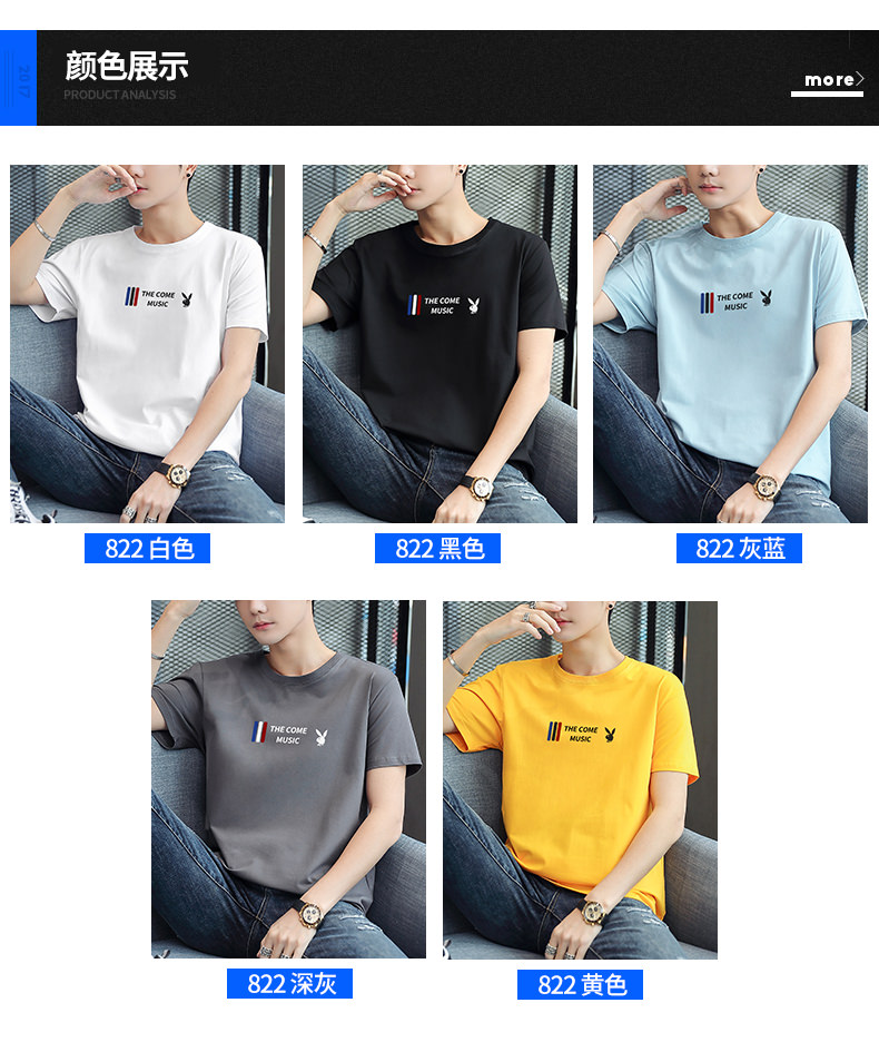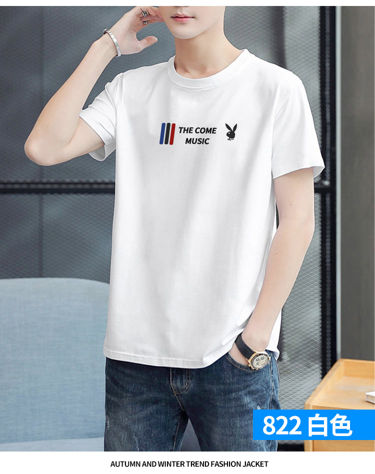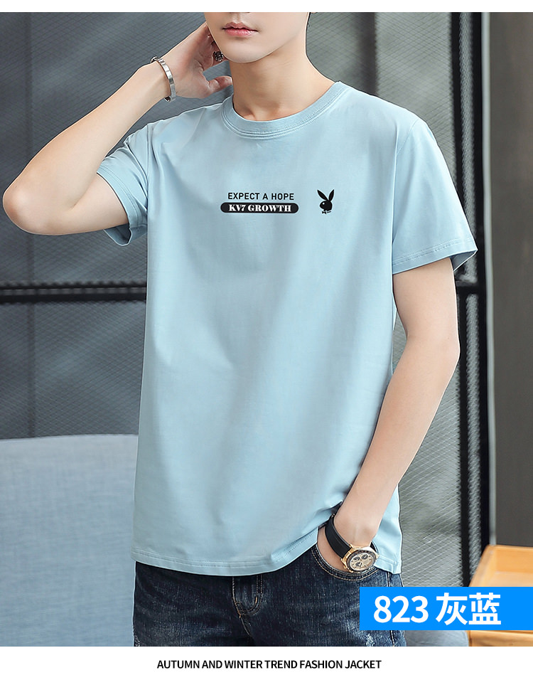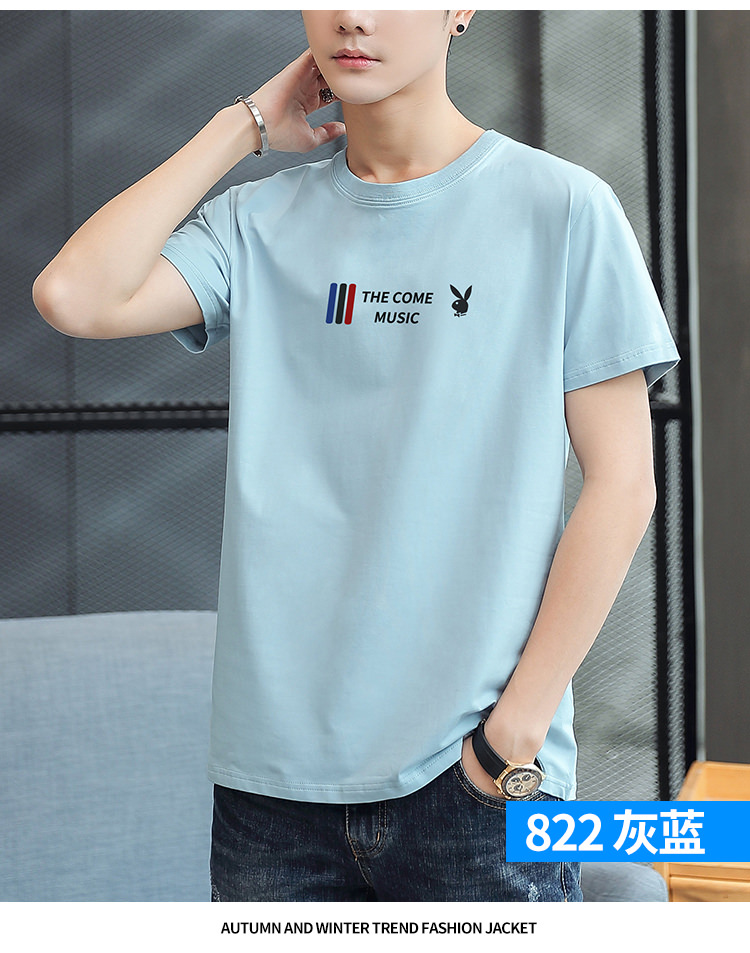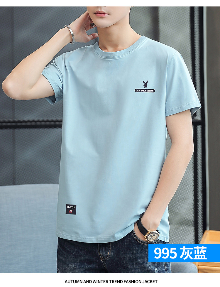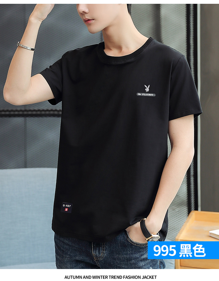 2022 new playboy mùa hè nam giới ngắn tay áo phông trắng cotton áo phông nửa tay xu hướng quần áo hàng đầu