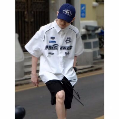 2022 Phong Cách Mỹ Mới Đường Phố In Chữ Áo Sơ Mi Nam Retro Hip-Hop Rời Bf Thường Thích Hợp Áo Sơ Mi