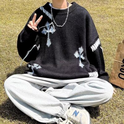 2022 thương hiệu thủy triều xu hướng quốc gia Áo len thêu chữ thập Su áo len oversize thu đông chiên đường phố một thế hệ