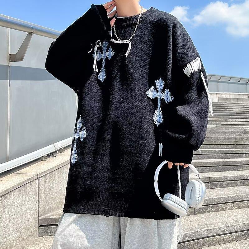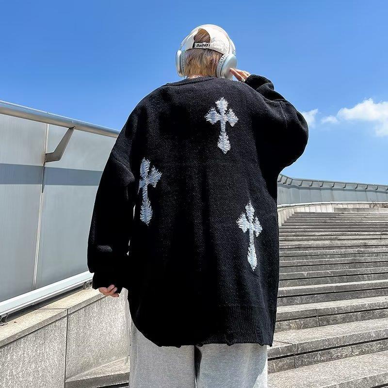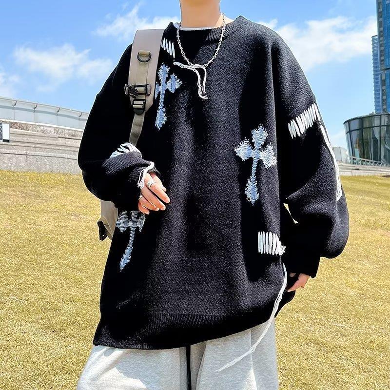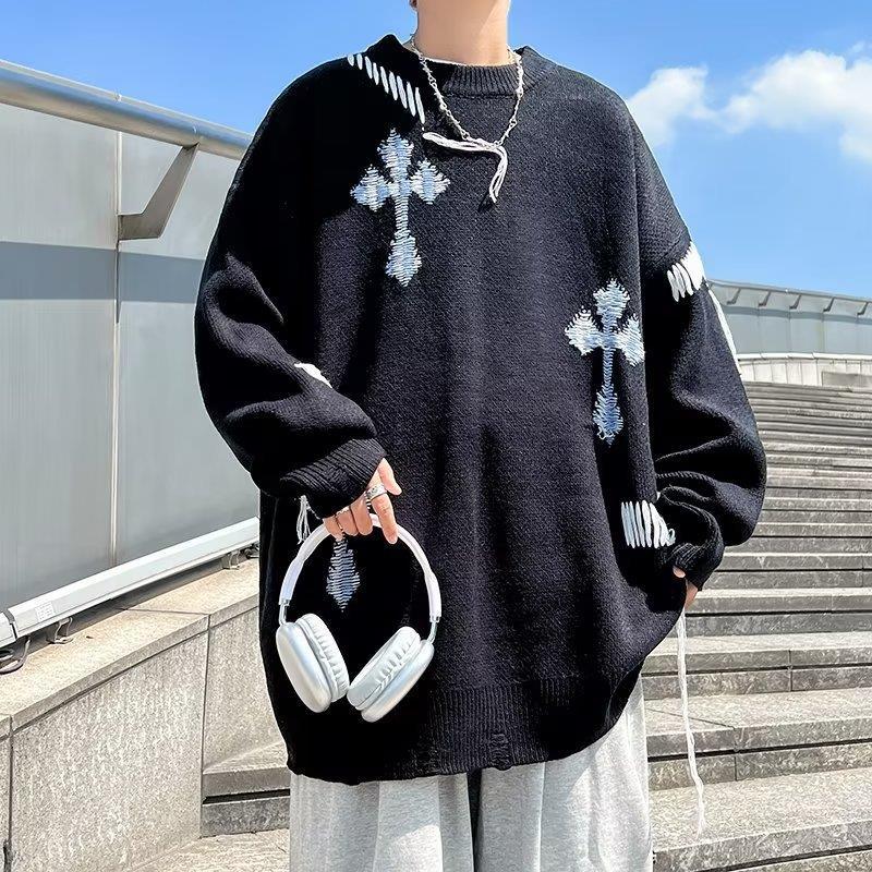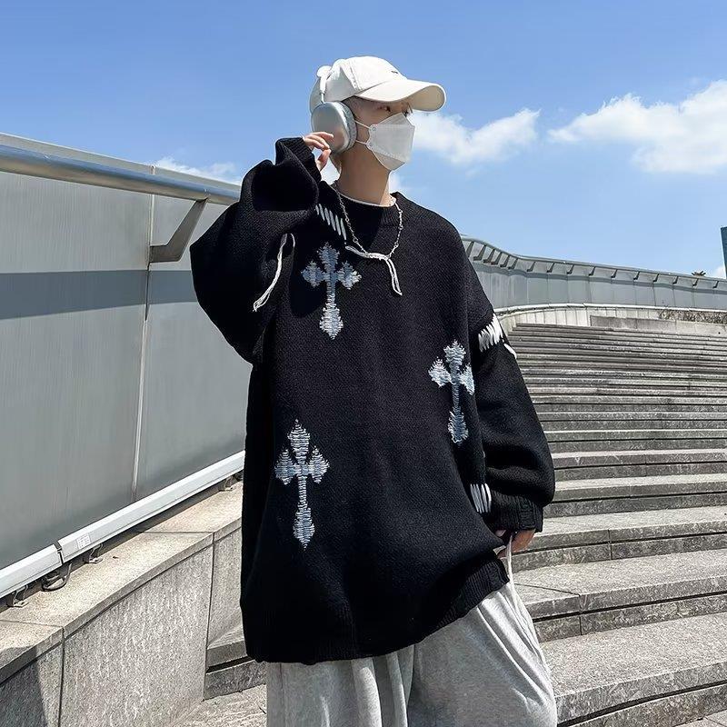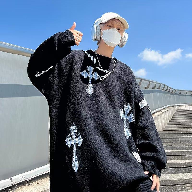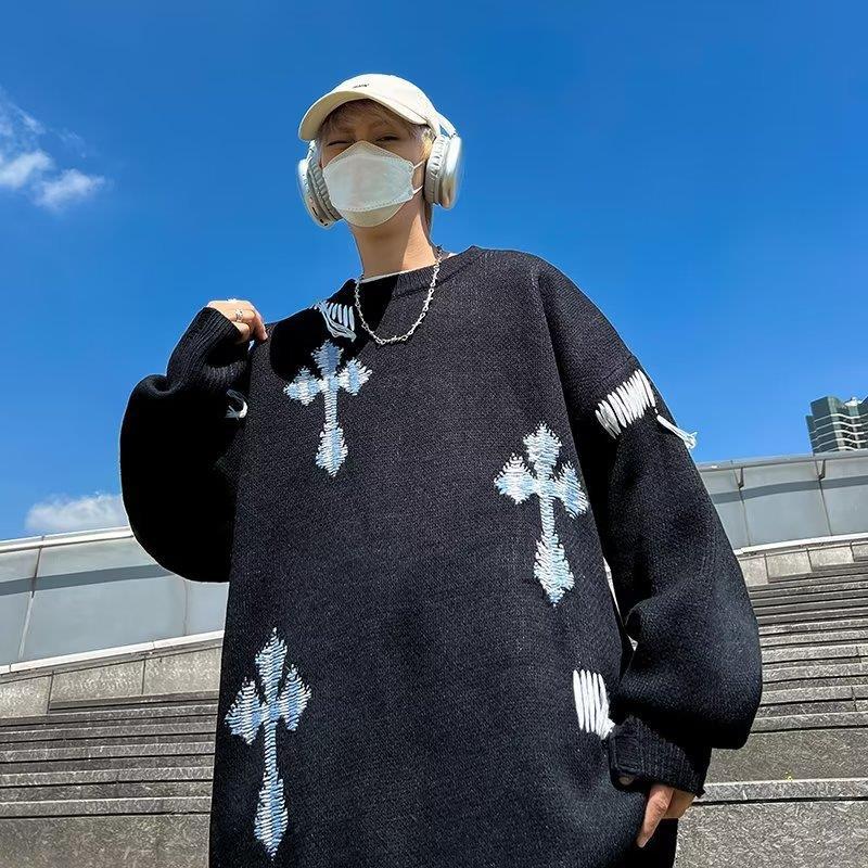 2022 thương hiệu thủy triều xu hướng quốc gia Áo len thêu chữ thập Su áo len oversize thu đông chiên đường phố một thế hệ
