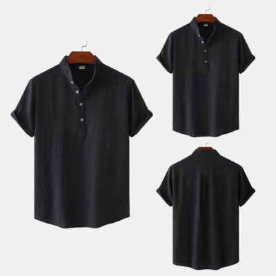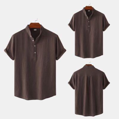 2023 Amazon Ga Độc Lập Mùa Hè Nam Cotton Và Vải Lanh Cổ Áo Sơ Mi Ngắn Tay Bãi Biển Áo Thun Áo Sơ Mi Quần Áo Nam