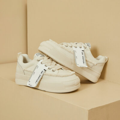 2023 Bosi Mới Tím Vải Mũi Tròn Cổ Đa Năng Thoáng Khí Đáy Dày Cao Đẳng Phong Cách Buộc Dây Giày