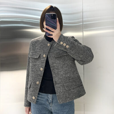 相较于普通的大衣 这款羊毛大衣的面料更加厚实 也更加软和