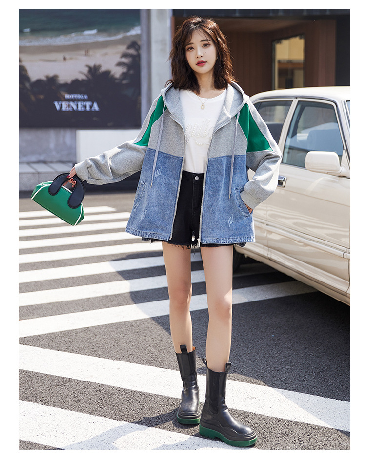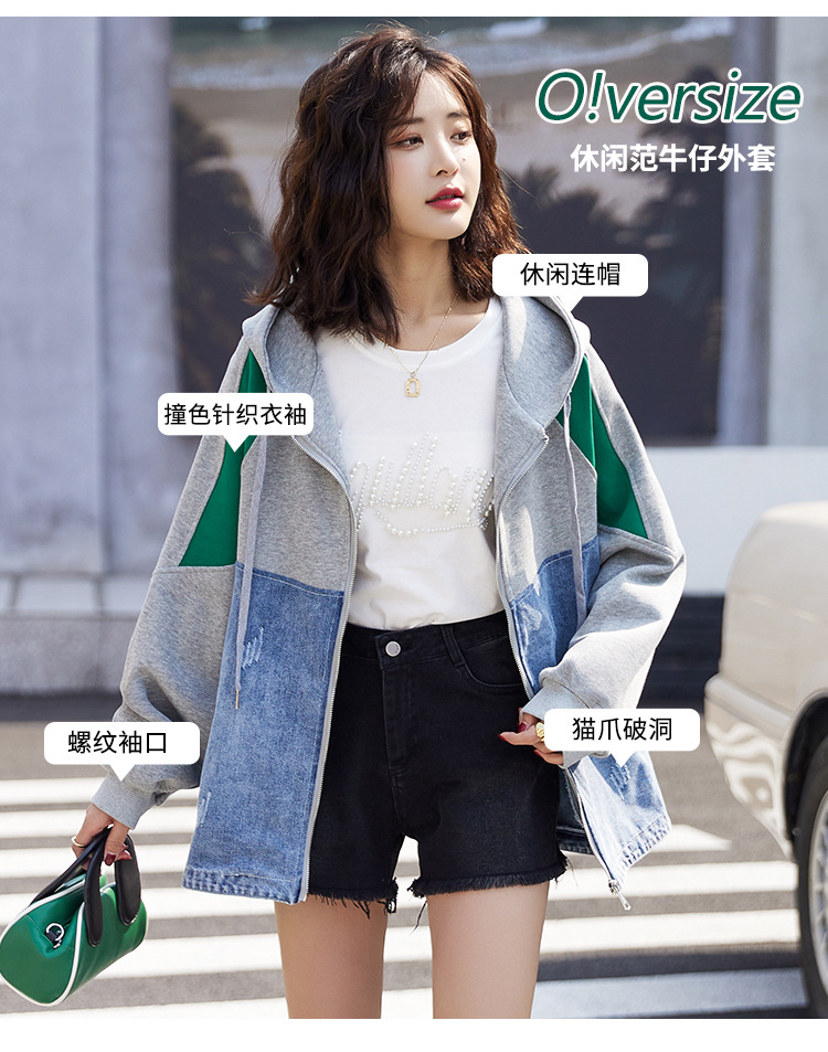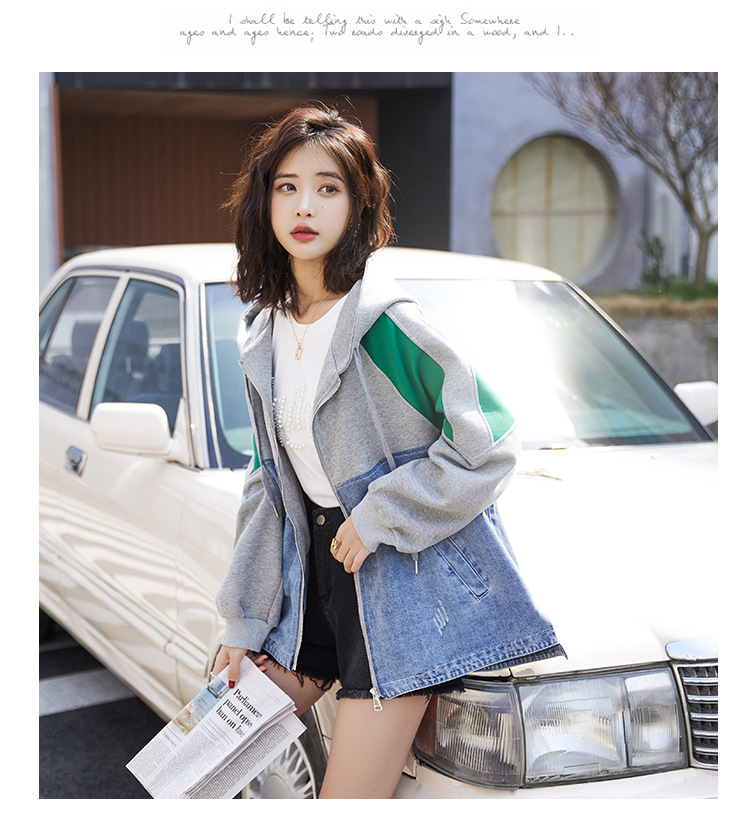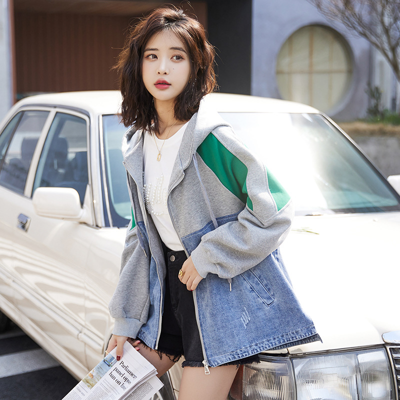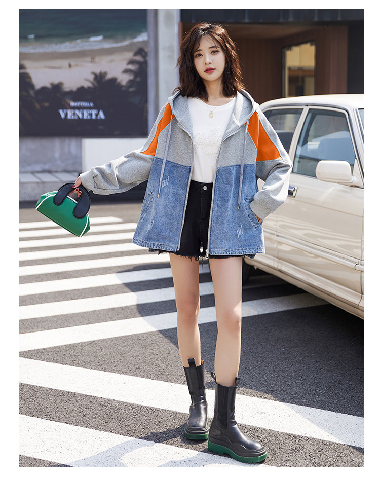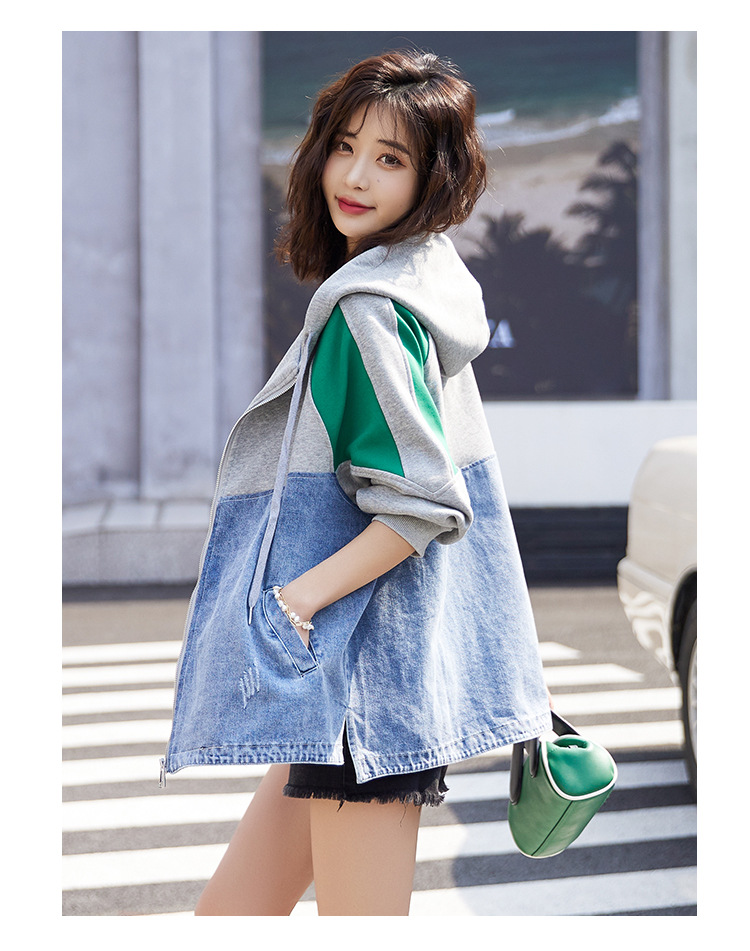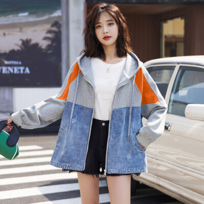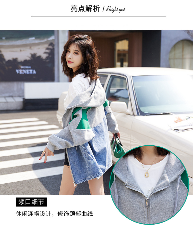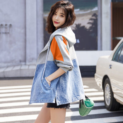 2023 Có Mũ Rời Hàn Quốc Áo Khoác Thường Áo Khoác Mùa Xuân Và Mùa Thu Mới Ga Châu Âu Denim Khâu Áo Khoác Nữ
