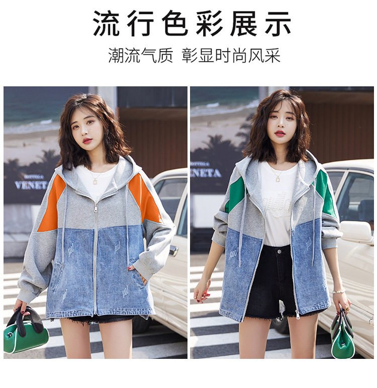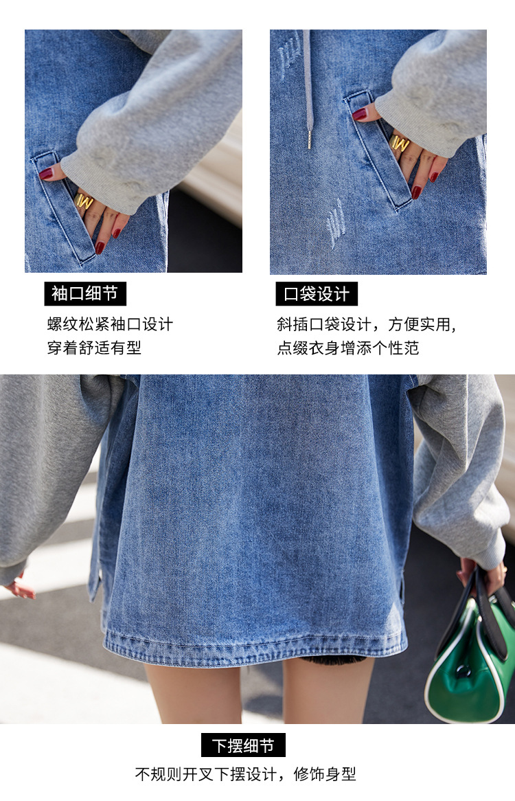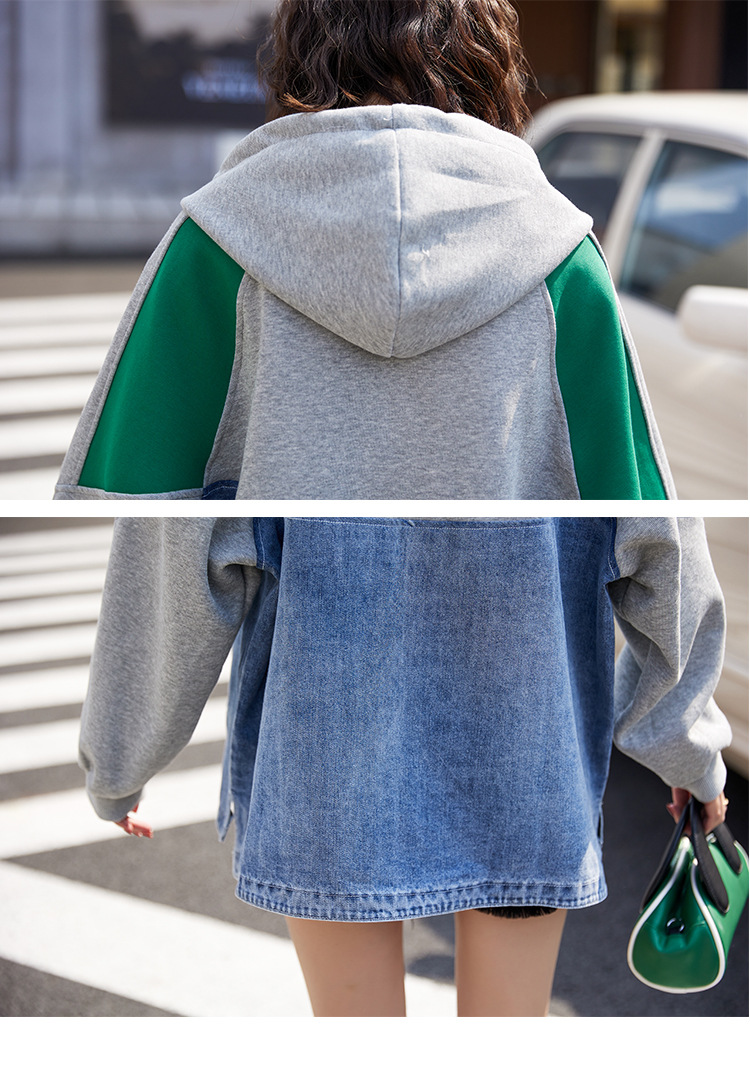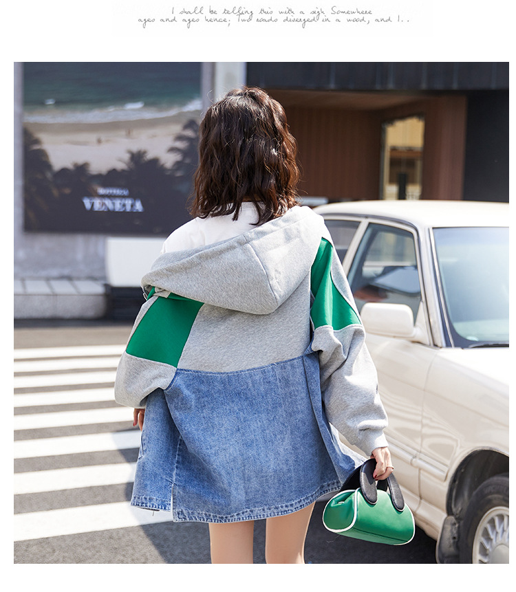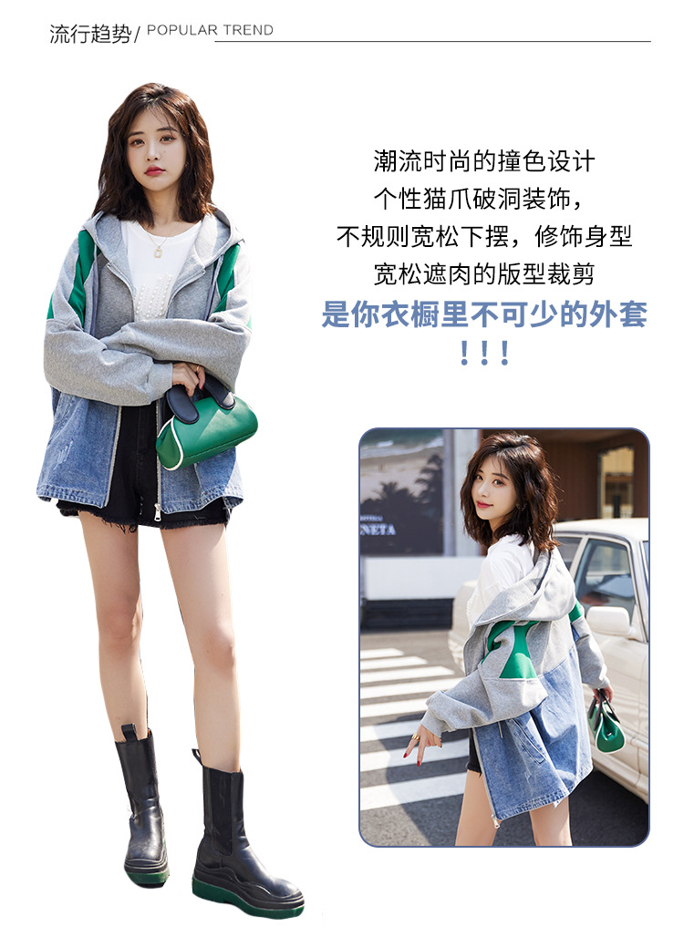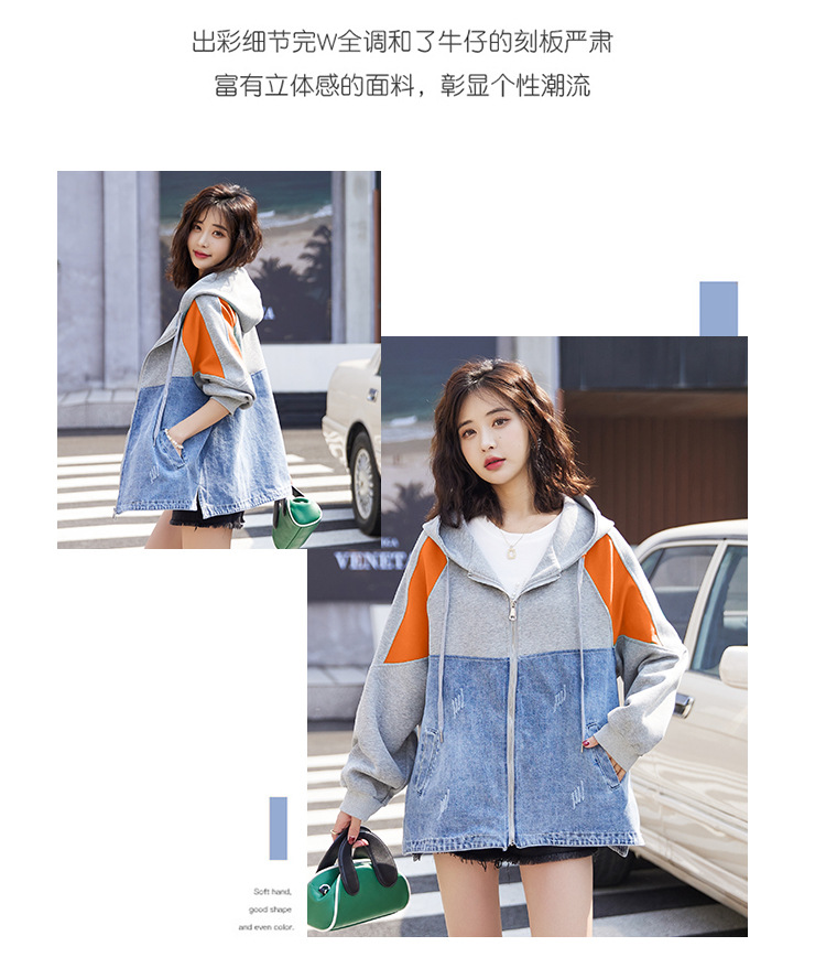 2023 Có Mũ Rời Hàn Quốc Áo Khoác Thường Áo Khoác Mùa Xuân Và Mùa Thu Mới Ga Châu Âu Denim Khâu Áo Khoác Nữ