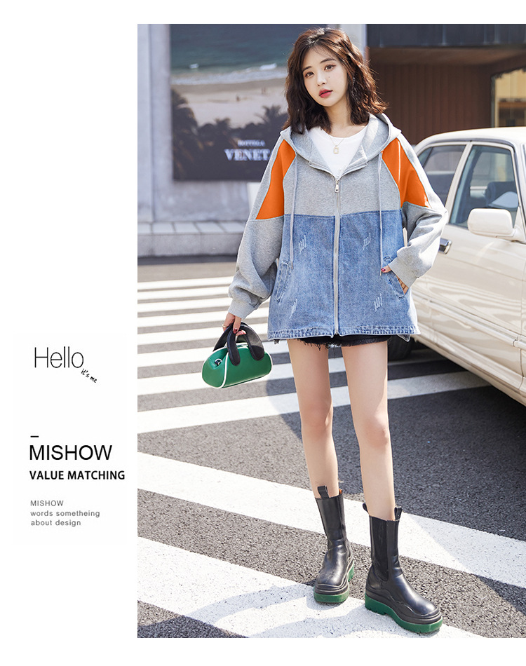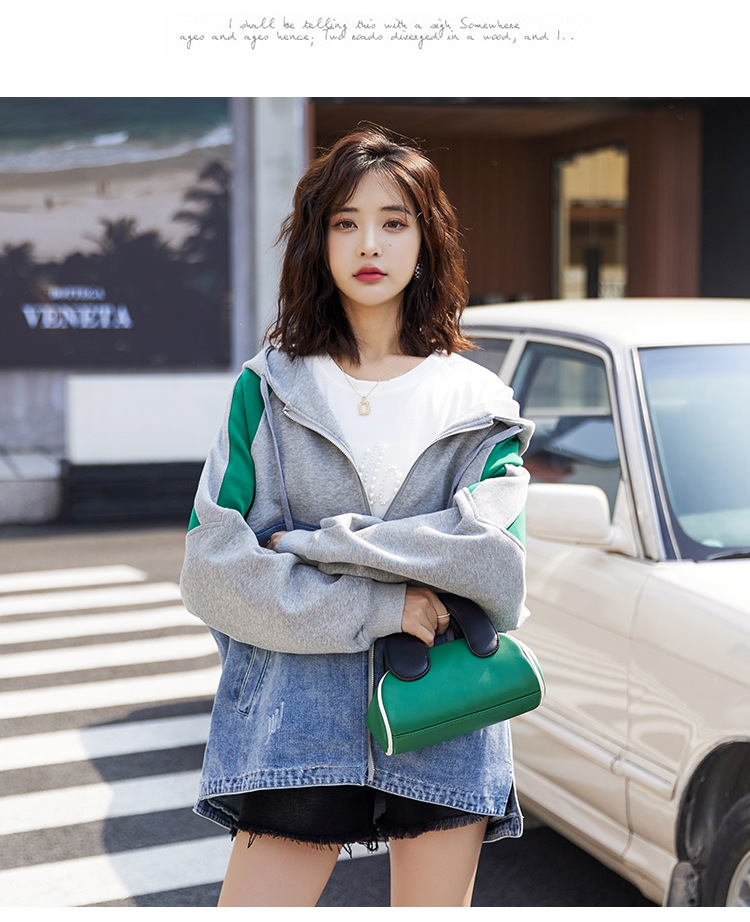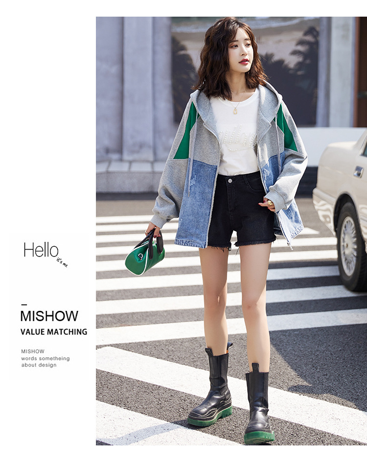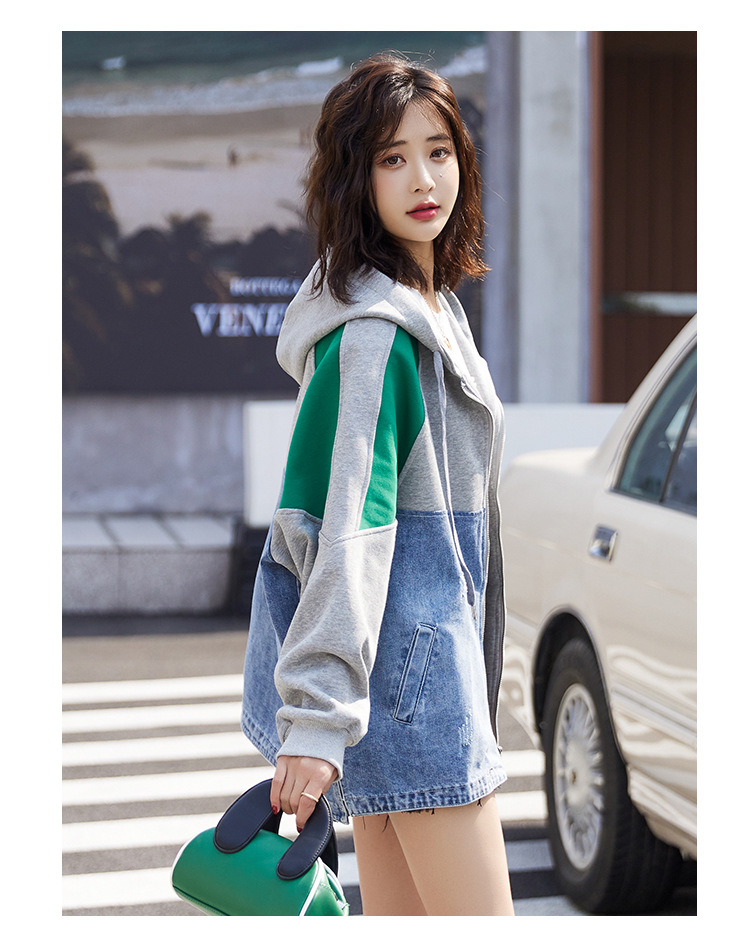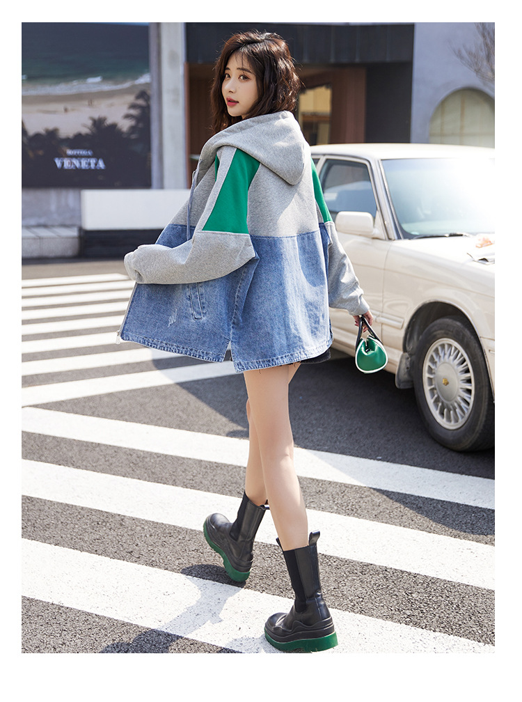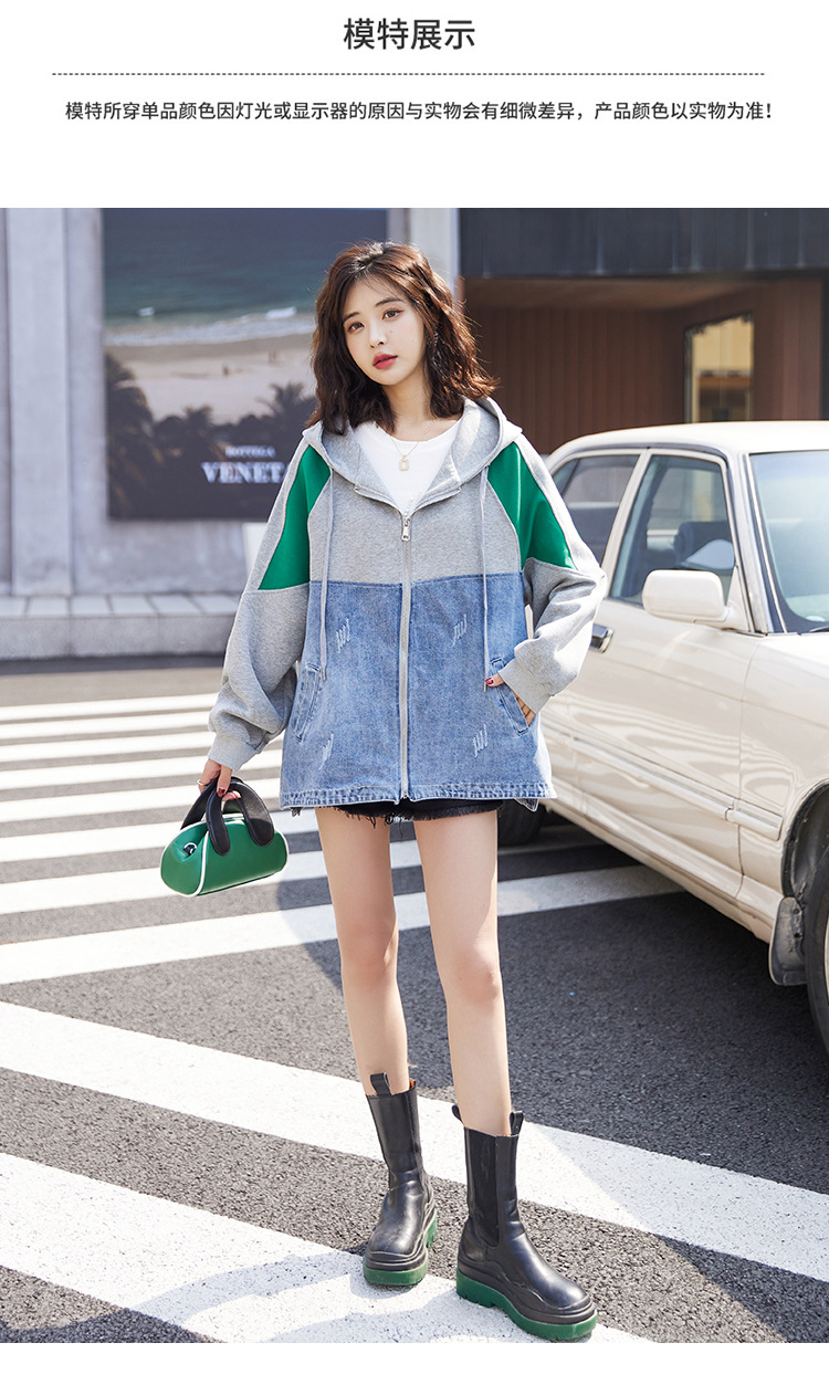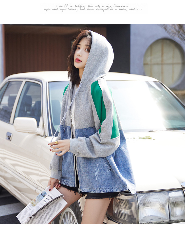 2023 Có Mũ Rời Hàn Quốc Áo Khoác Thường Áo Khoác Mùa Xuân Và Mùa Thu Mới Ga Châu Âu Denim Khâu Áo Khoác Nữ