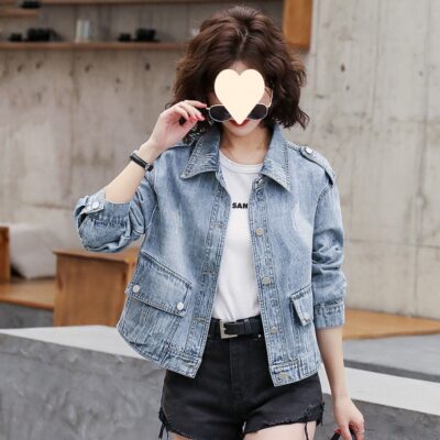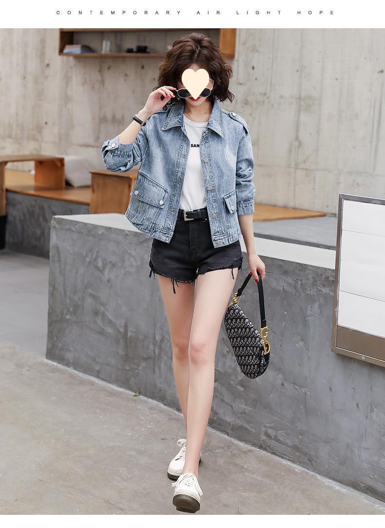 2023 đầu mùa xuân mới phiên bản Hàn Quốc hoang dã nhỏ ngắn denim áo khoác nữ áo khoác thường