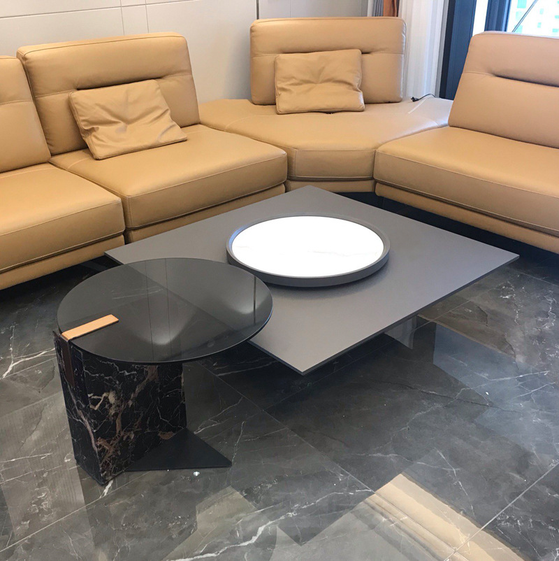 2023 Đèn Mới Sang Trọng Vuông Bàn Cà Phê Ngược Tam Giác Treo Hiện Đại Tối Giản Đá Đĩa Bàn Xoay Phòng Khách Nhà Căn Hộ Nhỏ