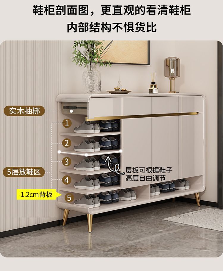 2023 Đẹp mới sang trọng lưới màu đỏ kem phong cách tủ giày sơn cửa nhà dung tích lớn tủ bảo quản