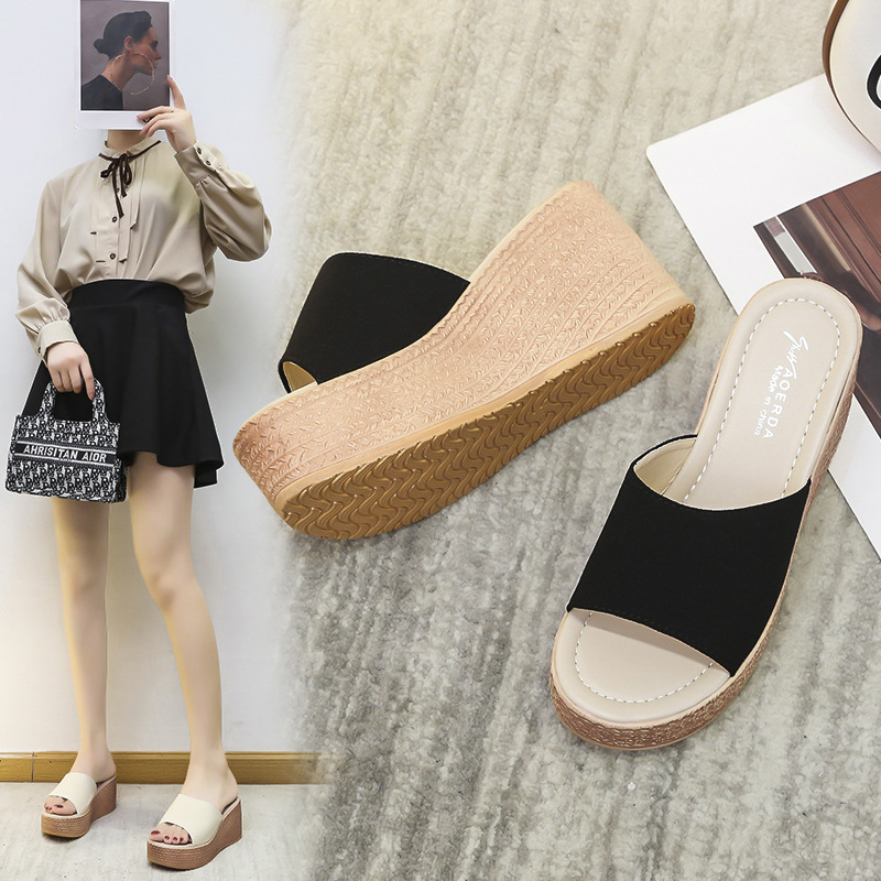 2023 Dép mới Xăng đan đế dày Dép thông thường một từ Dép tăng chiều cao nhẹ Dép nữ Spot Các nhà sản xuất