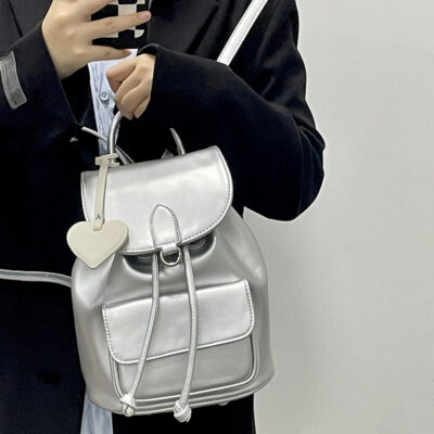 2023 Hàn Quốc Ins Túi Nữ Mới Túi Đeo Vai Màu Bạc Dung Tích Lớn Đơn Giản Túi Xách Ba Lô Du Lịch