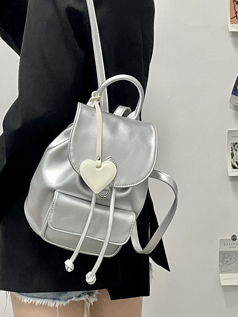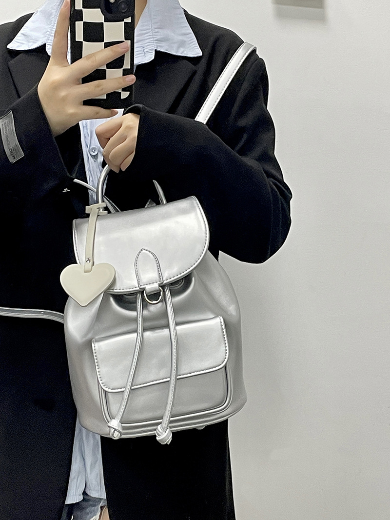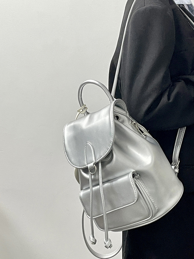 2023 Hàn Quốc Ins Túi Nữ Mới Túi Đeo Vai Màu Bạc Dung Tích Lớn Đơn Giản Túi Xách Ba Lô Du Lịch