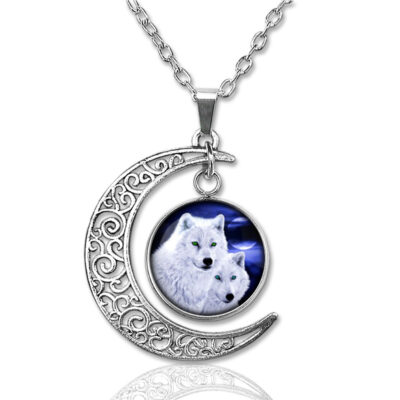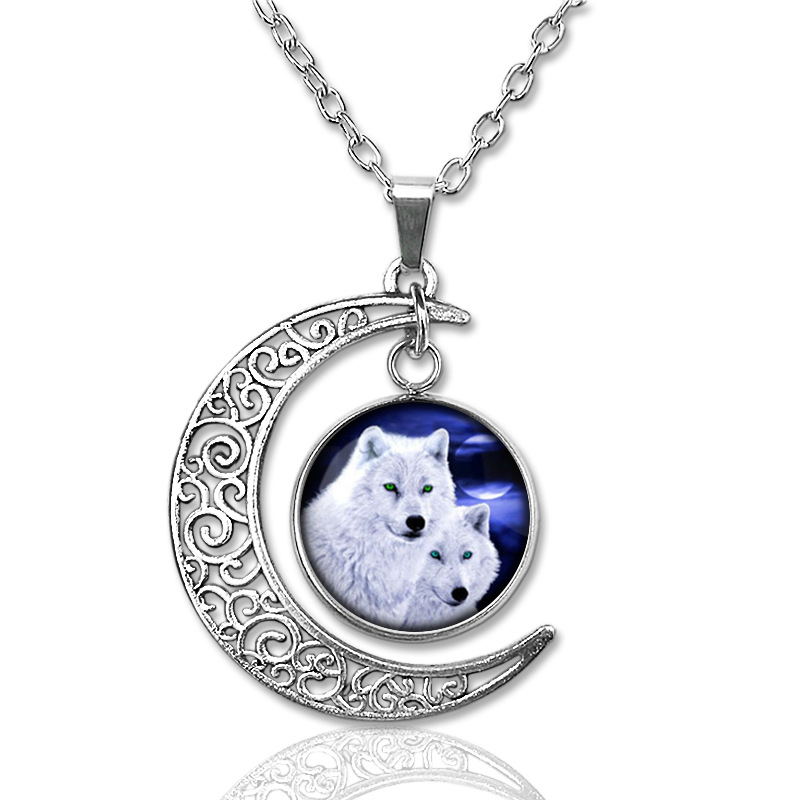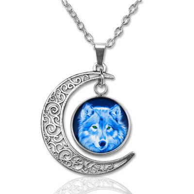 2023 Hàng Mới Về Vòng Cổ Âu Mỹ Sói Vật Tổ Thời Gian Đá Quý Cổ Rỗng Mặt Trăng Trang Sức Mặt Dây Chuyền Retro Phụ Kiện DM