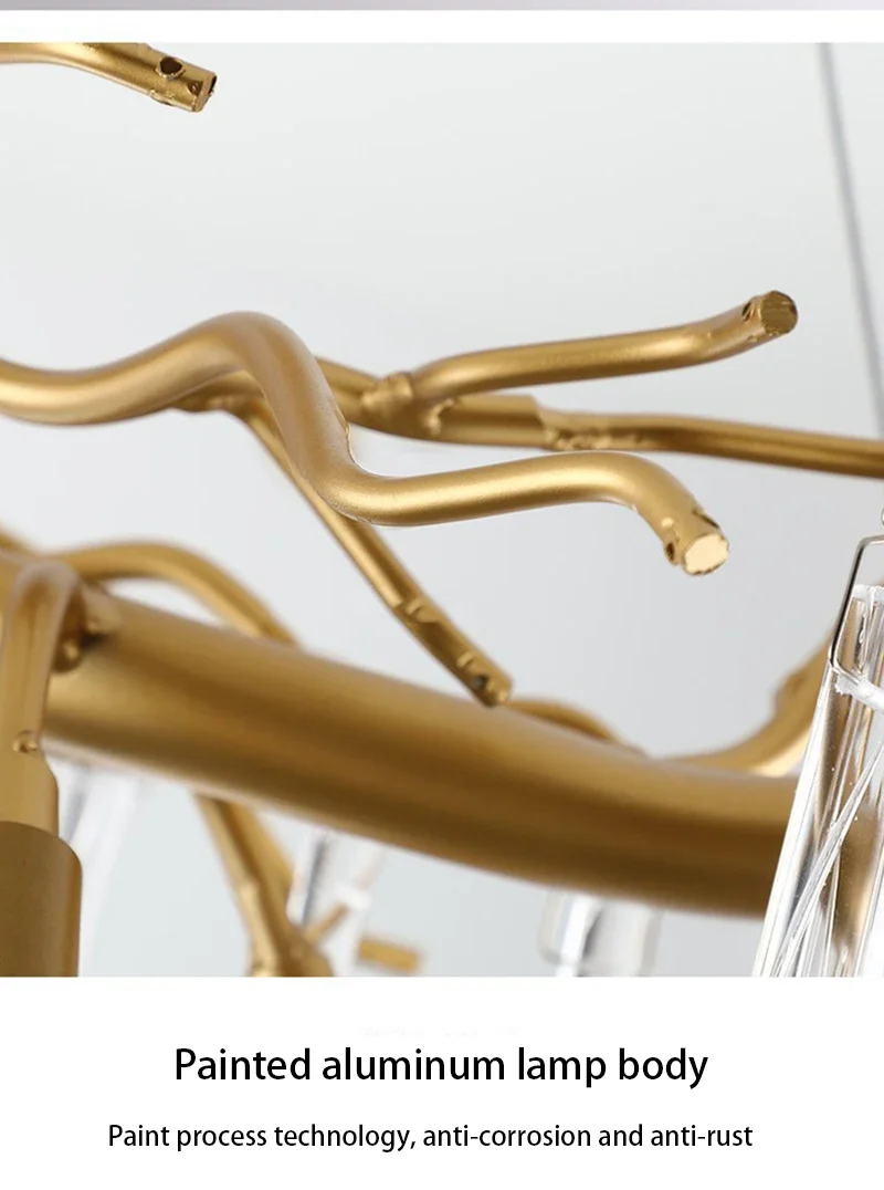 2023 Modern Gold Crystal Chandelier Living Room High Ceiling Luxury Big Lustres Aluminium Crystal Tree Branch Chandelier Lights