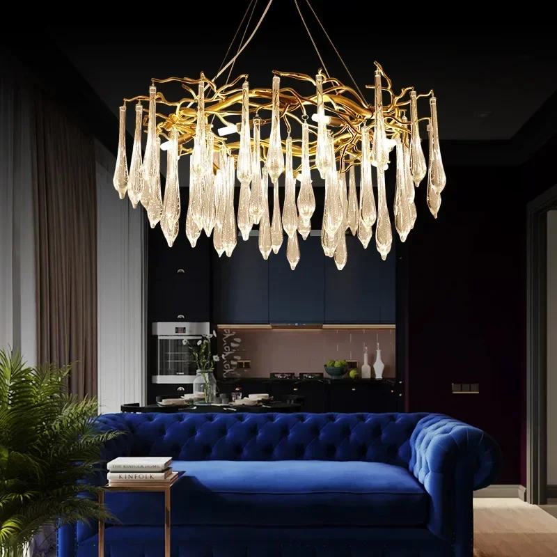 2023 Modern Gold Crystal Chandelier Living Room High Ceiling Luxury Big Lustres Aluminium Crystal Tree Branch Chandelier Lights