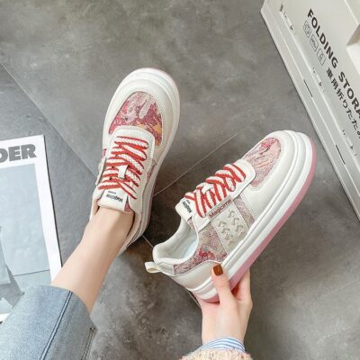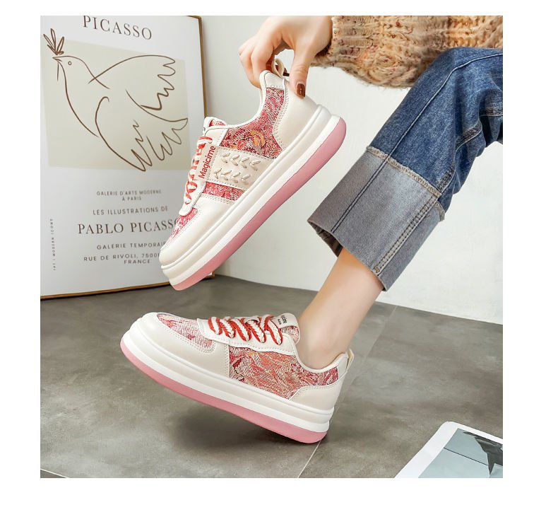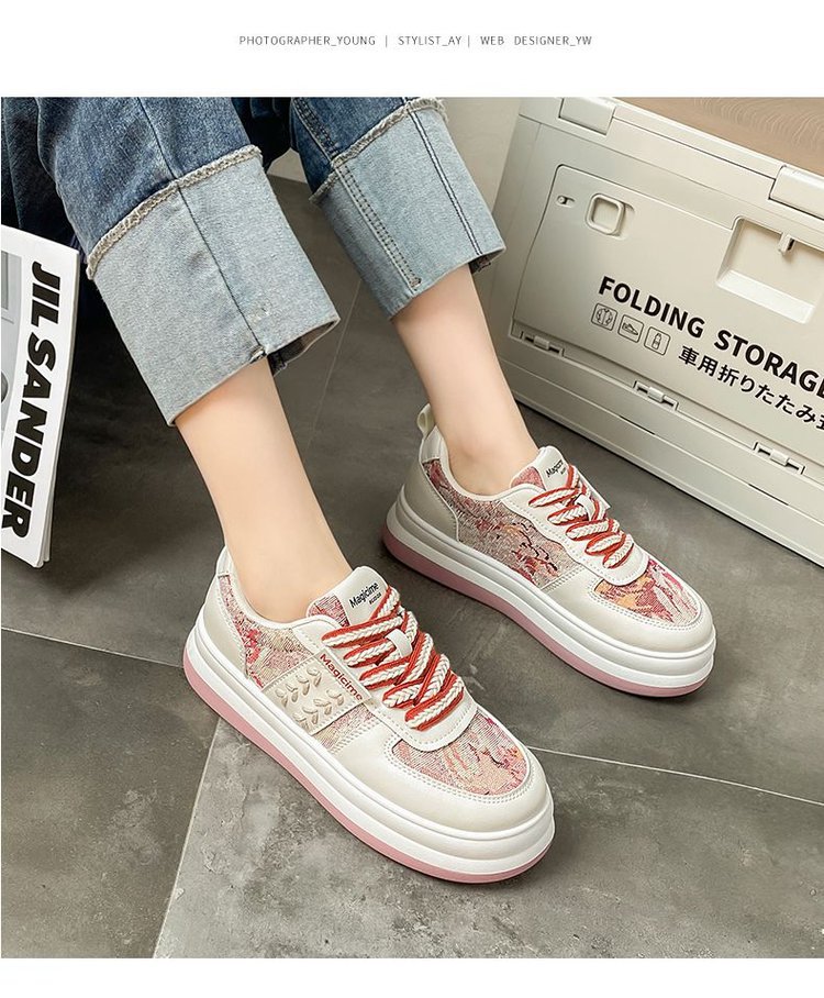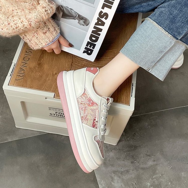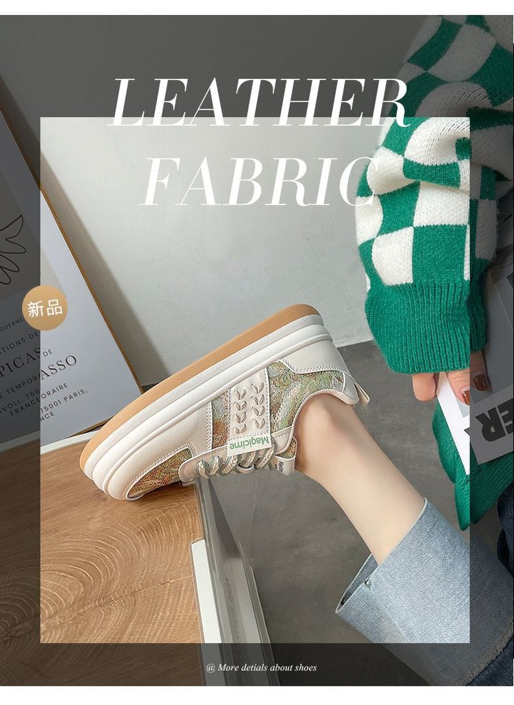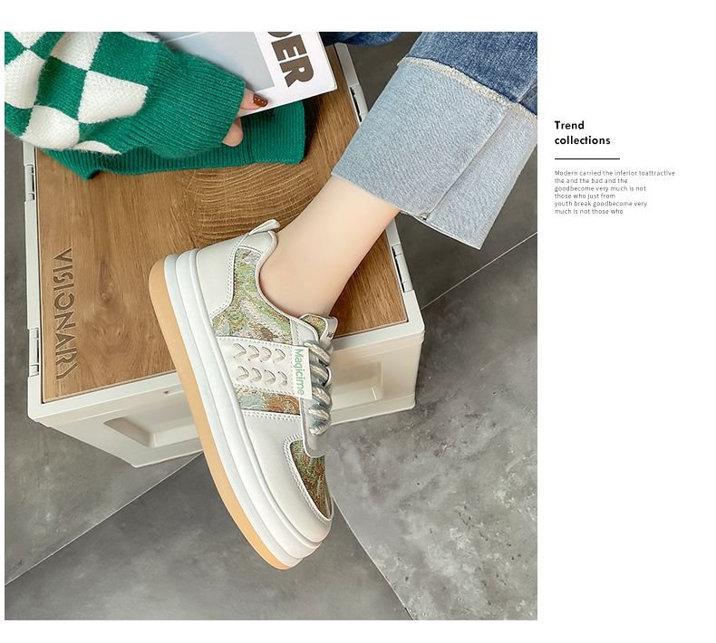 2023 hợp thời trang phong cách đại học giày nhỏ màu trắng của phụ nữ thiết kế thiểu số giày thể thao tai lúa mì tranh sơn dầu giày thường phong cách retro giày đi lại