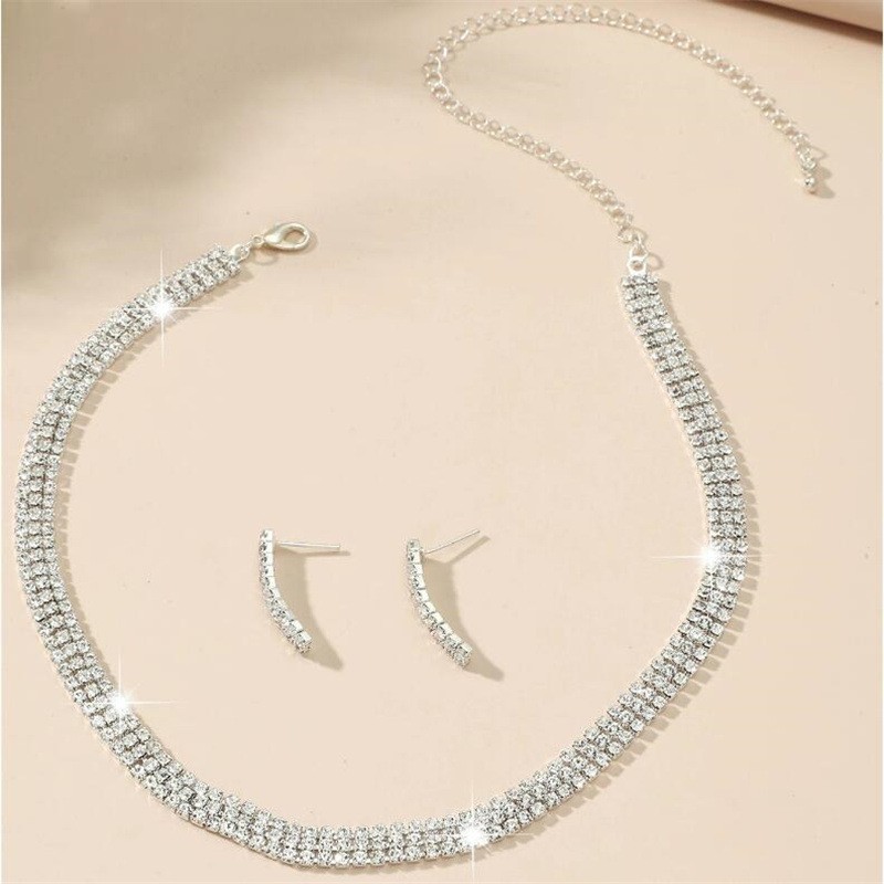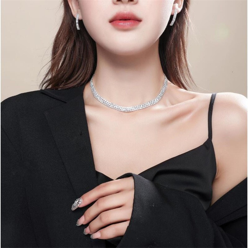 2023 Mới Cưới Pháp Ánh Sáng Sang Trọng Cá Tính Móng Vuốt Dây Chuyền Full Kim Cương Zircon Bộ Bông Tai Vòng Cổ 2 Bộ Trang Sức Đa Năng