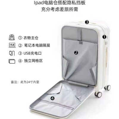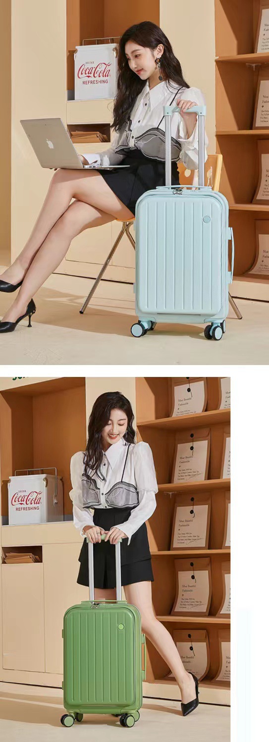 2023 mới đa chức năng mở phía trước hành lý vali có thể sạc lại vali xe đẩy vali lên máy bay 20 inch xuyên biên giới