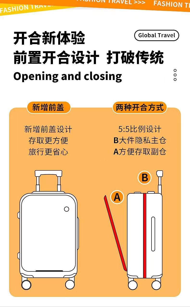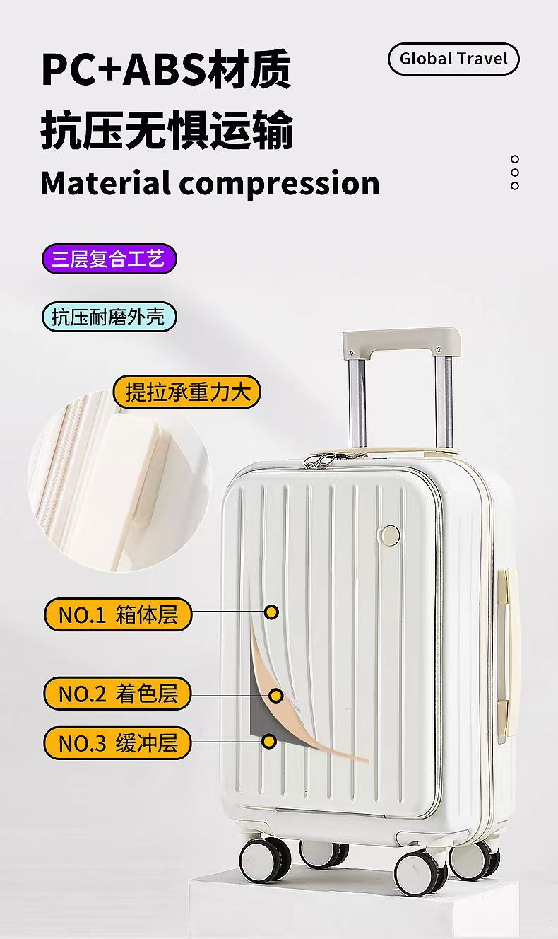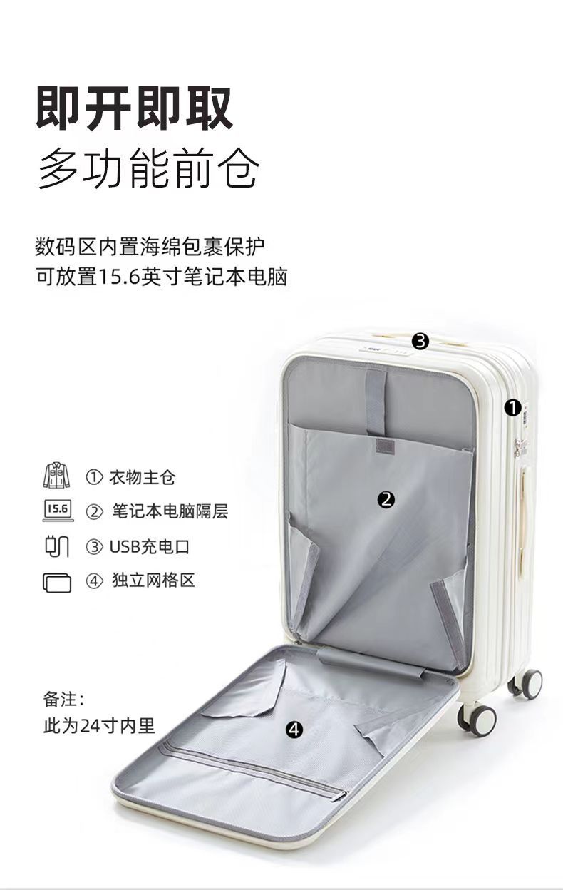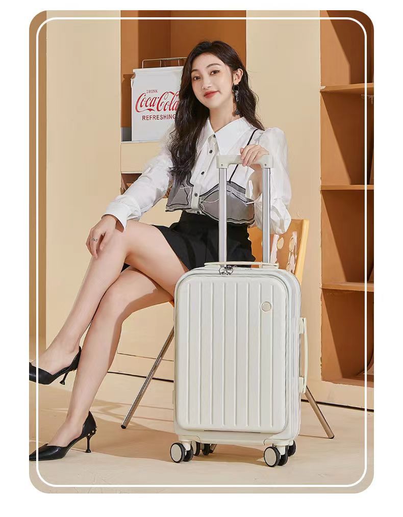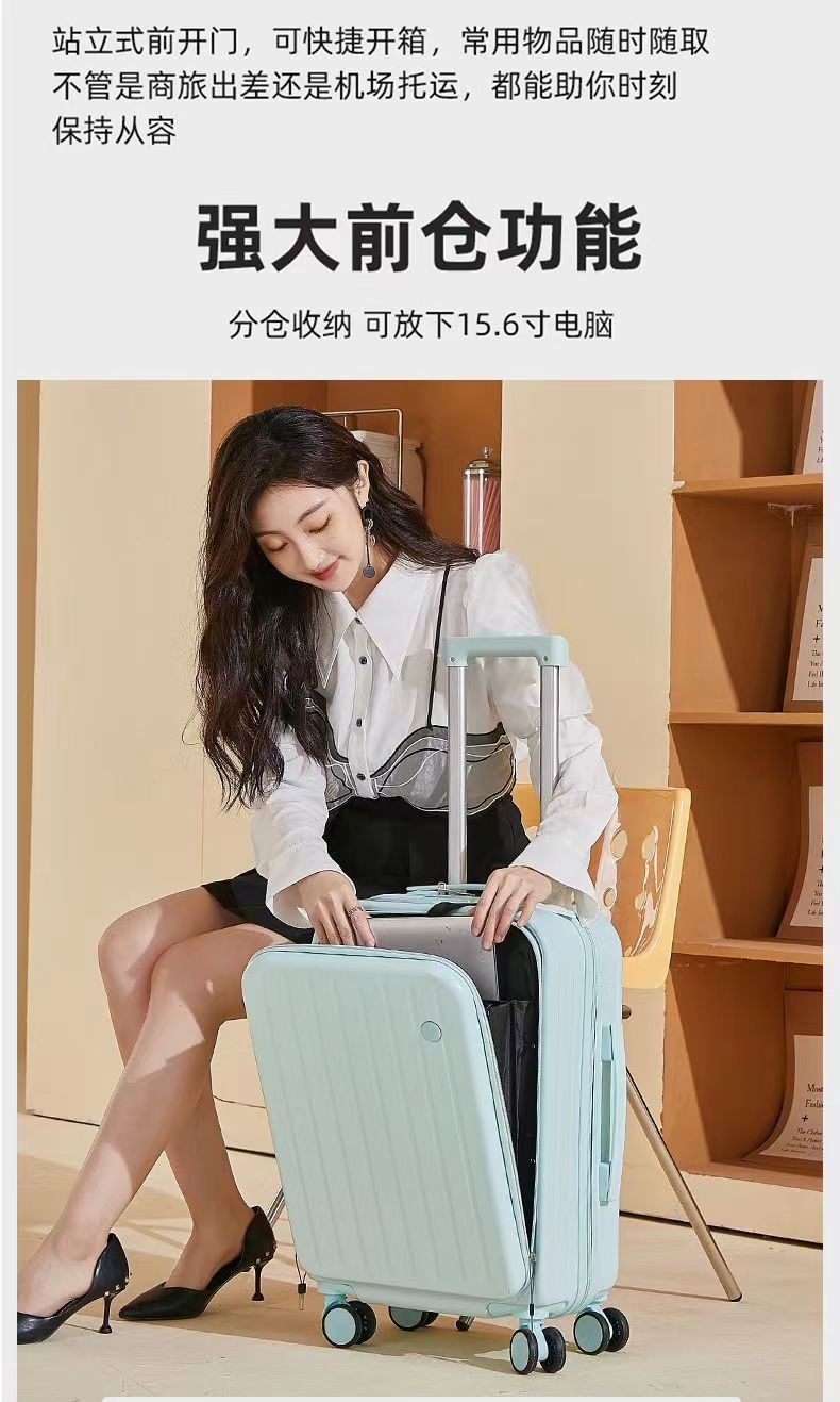 2023 mới đa chức năng mở phía trước hành lý vali có thể sạc lại vali xe đẩy vali lên máy bay 20 inch xuyên biên giới