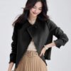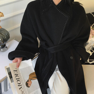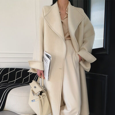 2023 mới đơn giản theo phong cách Nhật Bản và Hàn Quốc vòm khâu cổ áo rộng rãi kết cấu thời trang phù hợp với áo khoác len hai mặt áo khoác nữ