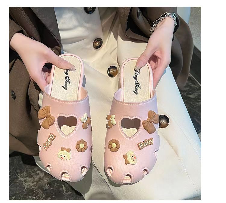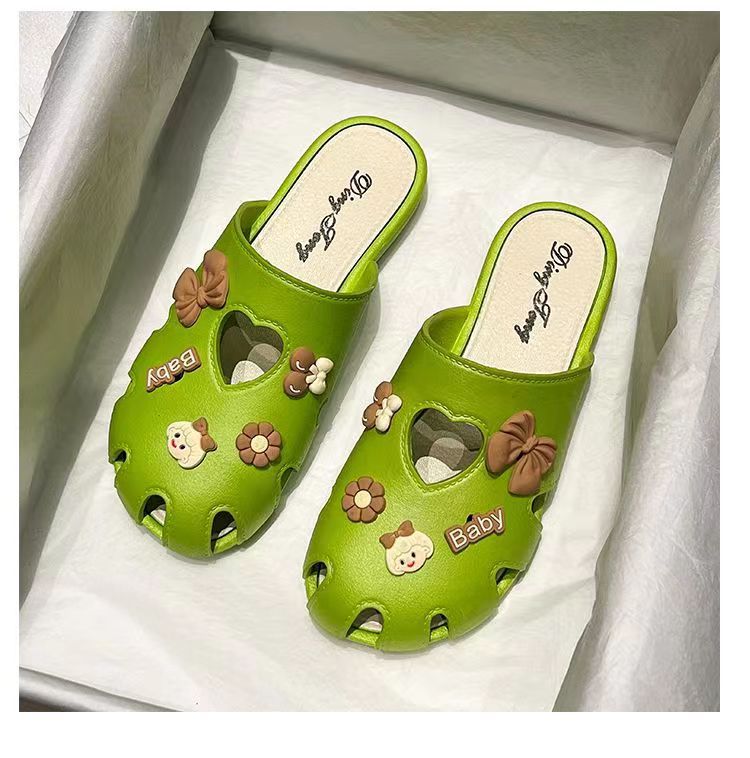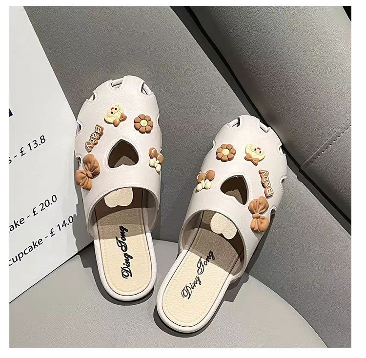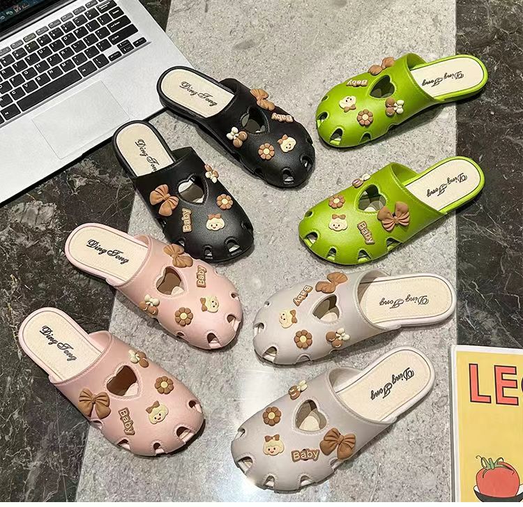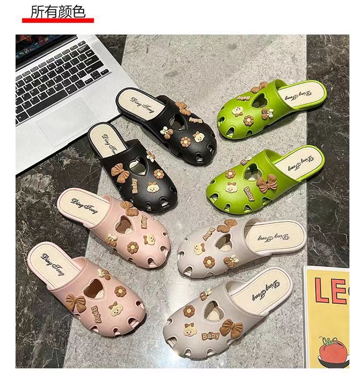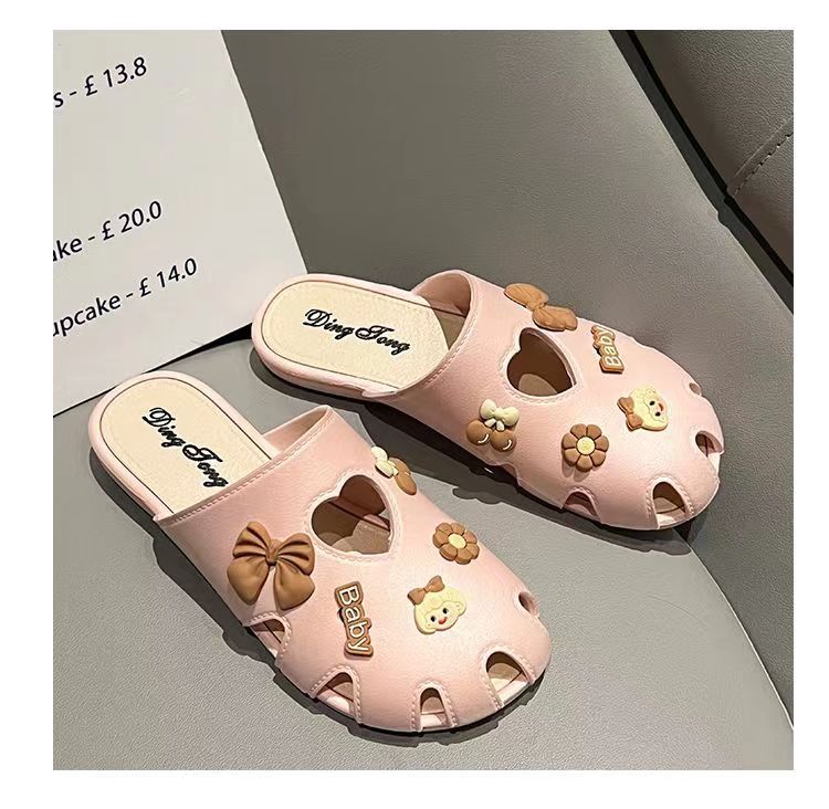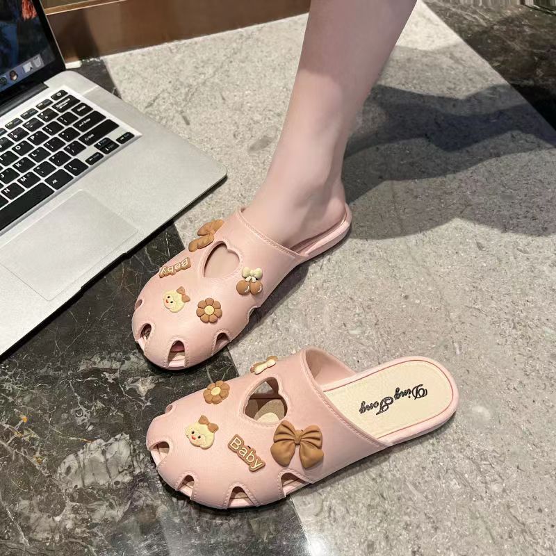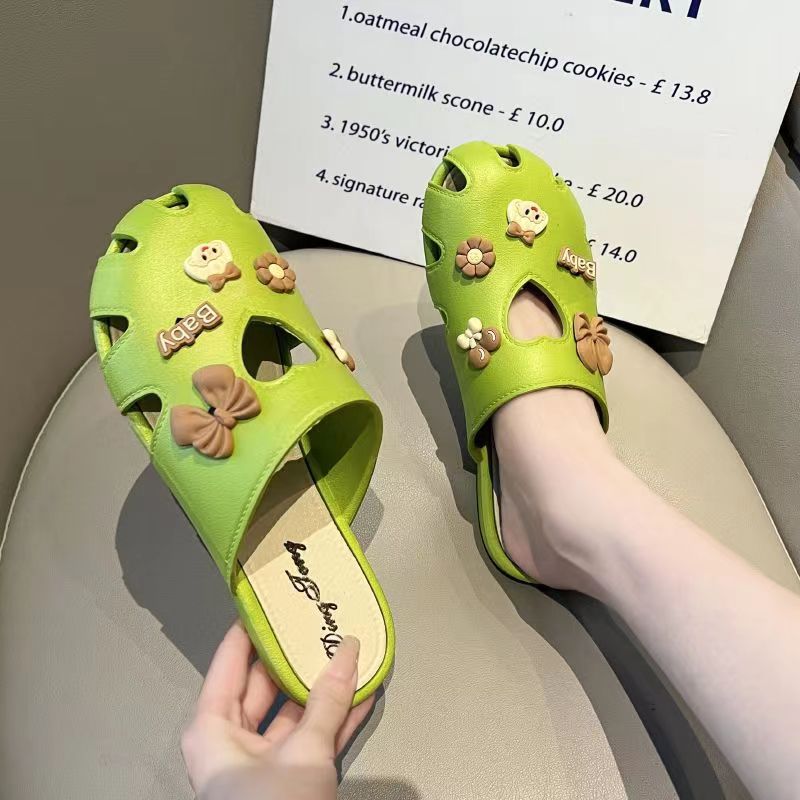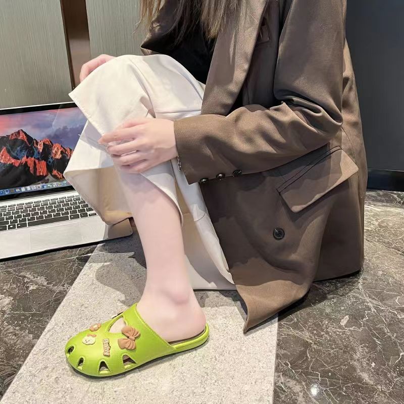 2023 Mới Gấu Bánh Quy Có Lỗ Giày Nữ Mùa Hè Dễ Thương Áo Khoác Ngoài Thoải Mái Đáy Dày Bao Đầu Đi Biển Cho Và Dép Nữ
